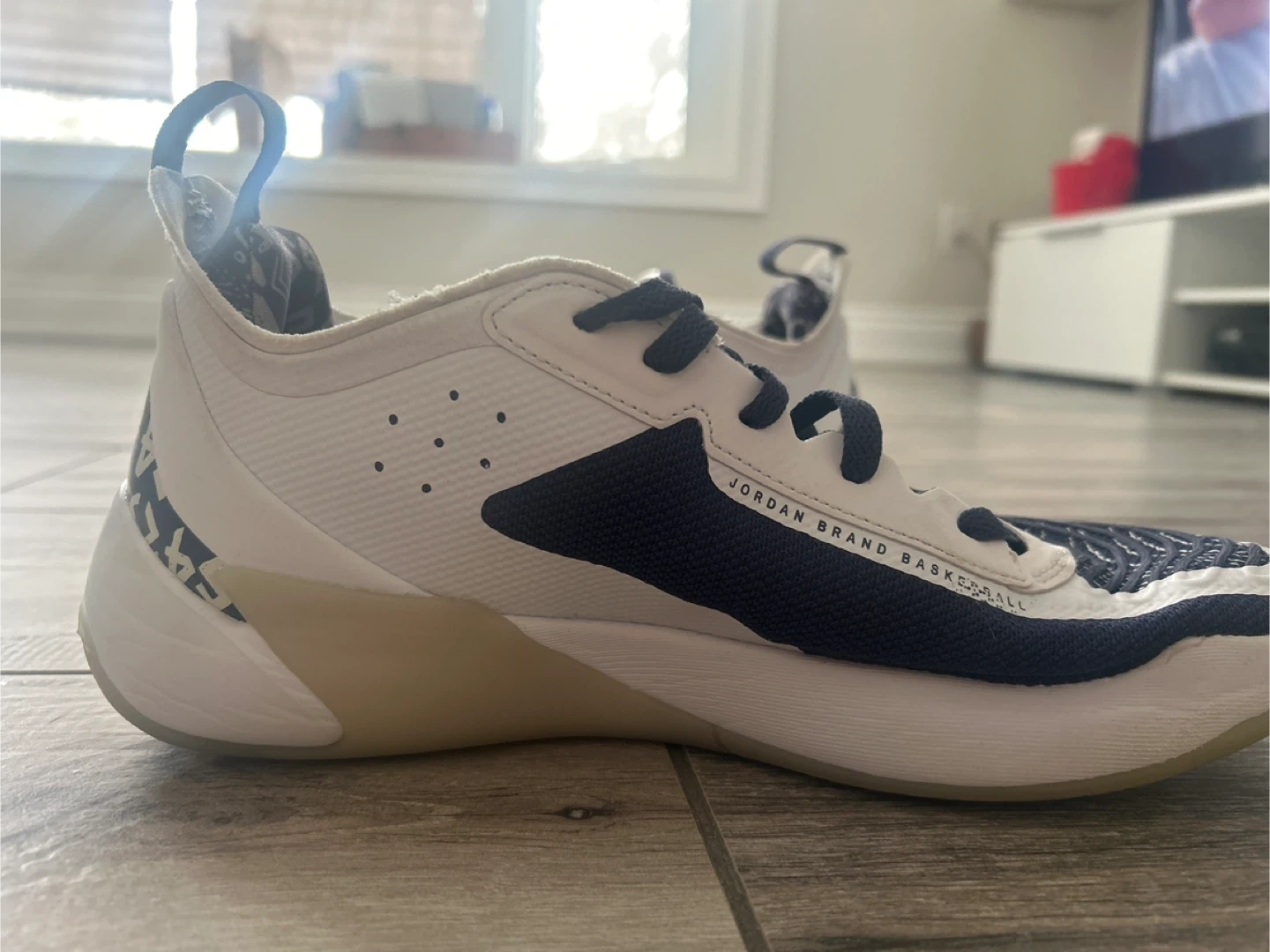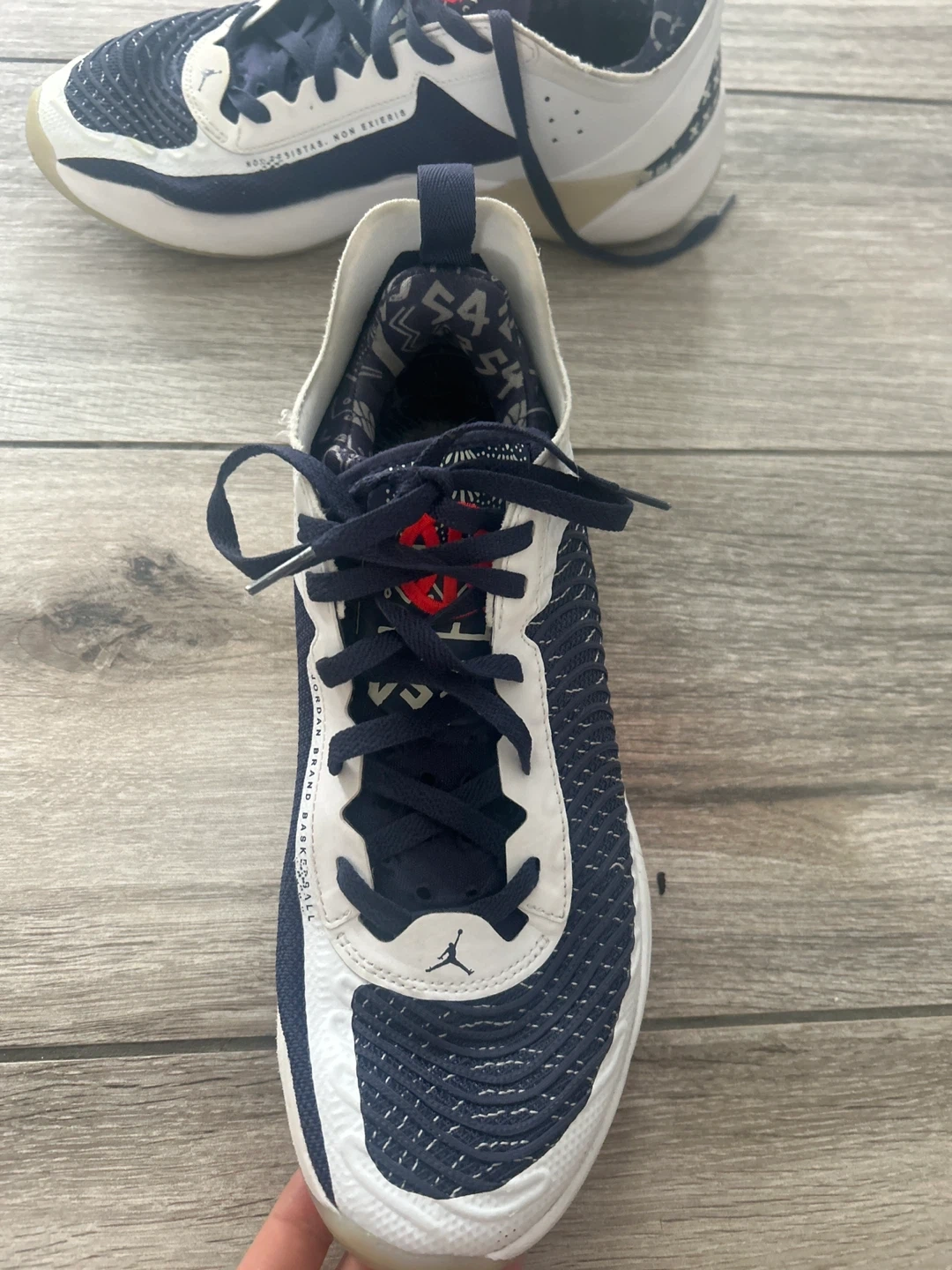 Selling a pair of Jordan Brand basketball shoes. They're in good condition with some signs of wear, as shown in the photos. Perfect for hitting the court