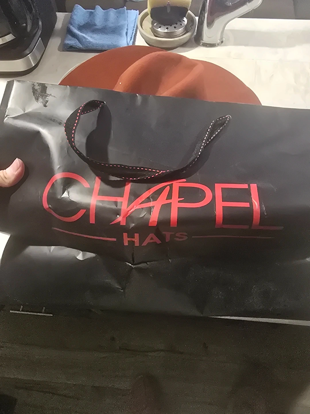 This is a Peter Grimm "True Character" cowboy hat. It's a stylish wide-brimmed hat in a reddish-brown colour. This hat is perfect for adding some flair to any outfit!