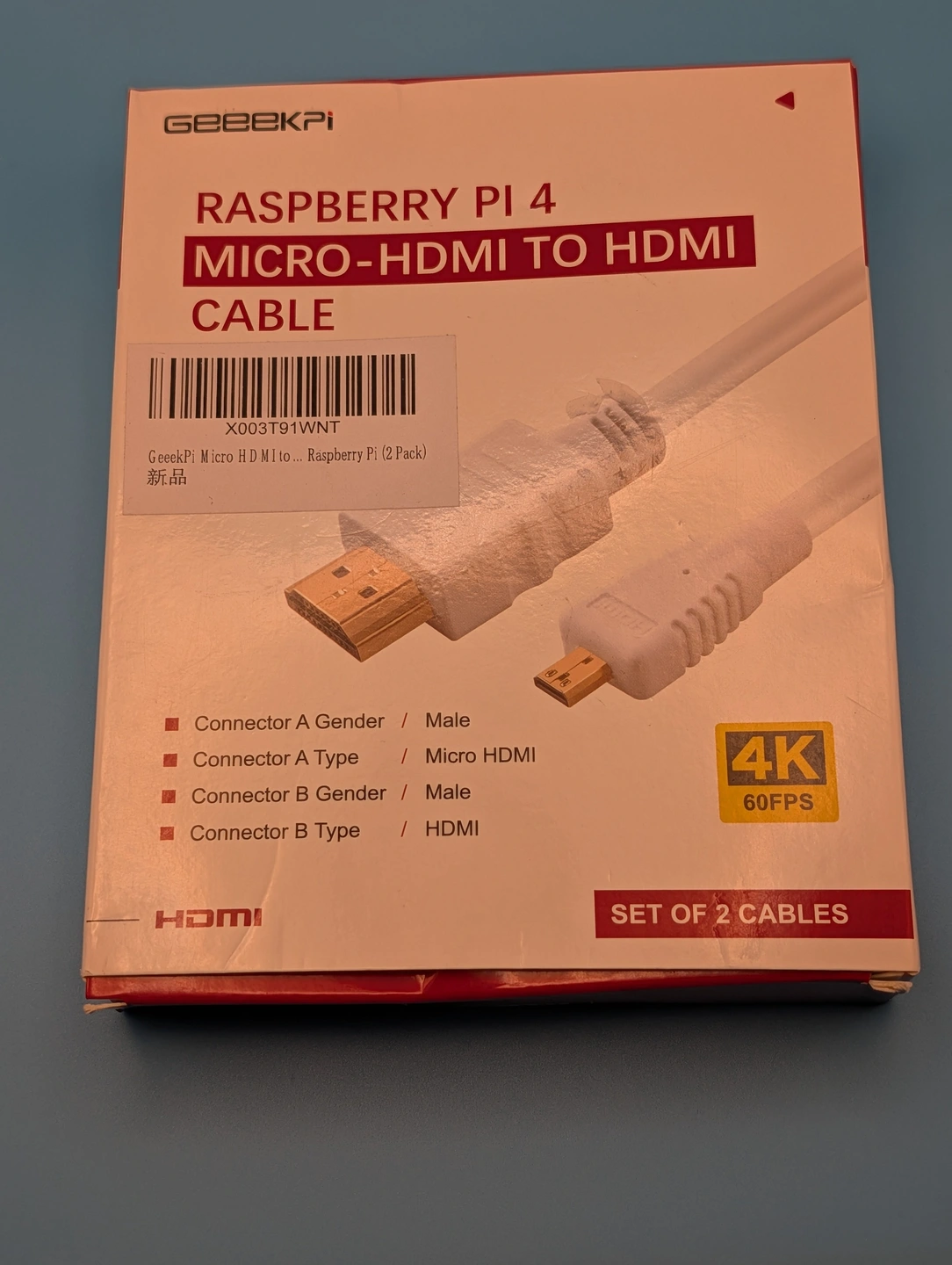 Selling a brand new GeeekPi Raspberry Pi 4 Micro-HDMI to HDMI cable. It's a set of two cables, perfect for connecting your Raspberry Pi to a display.