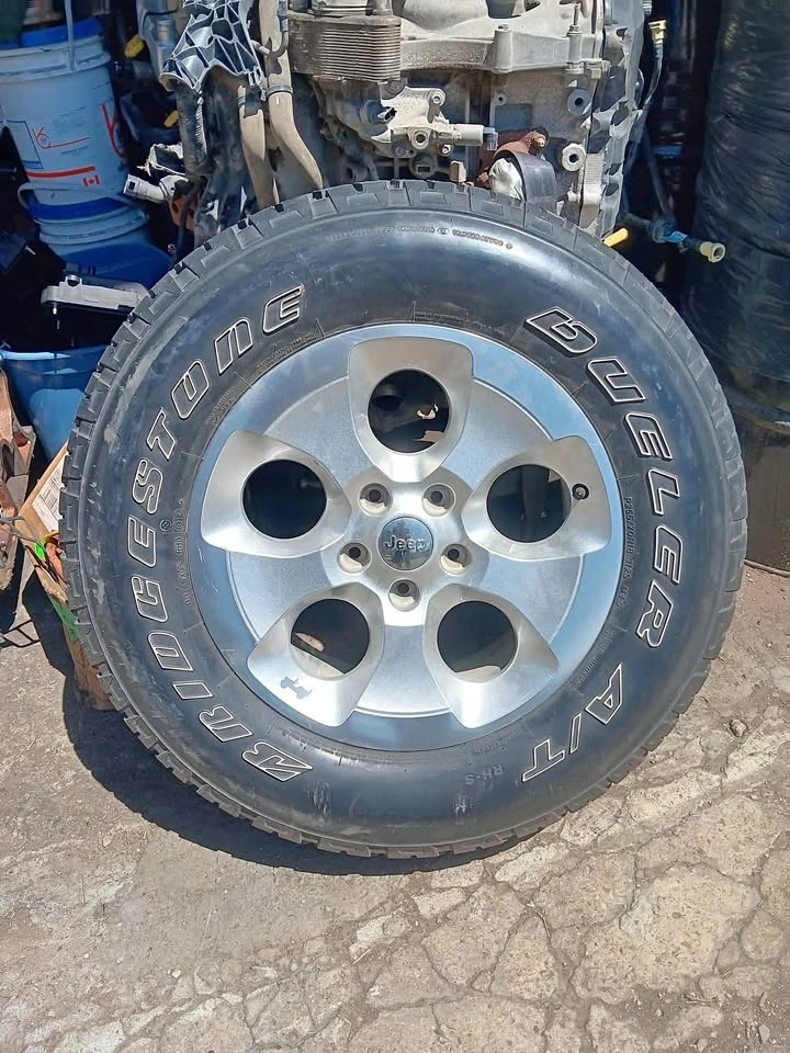 Brand new, never used OEM Jeep Sahara rim and tire. Zero rust, has the Jeep hub cap and Jeep imprint on the rim. Like it was bought yesterday.