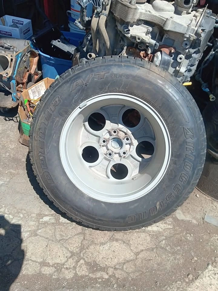 Brand new, never used OEM Jeep Sahara rim and tire. Zero rust, has the Jeep hub cap and Jeep imprint on the rim. Like it was bought yesterday.