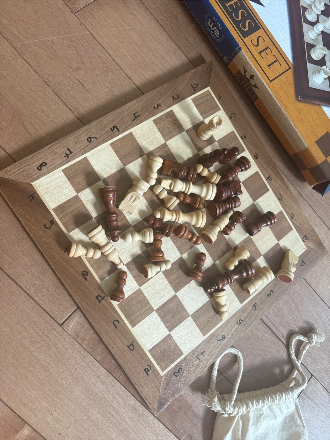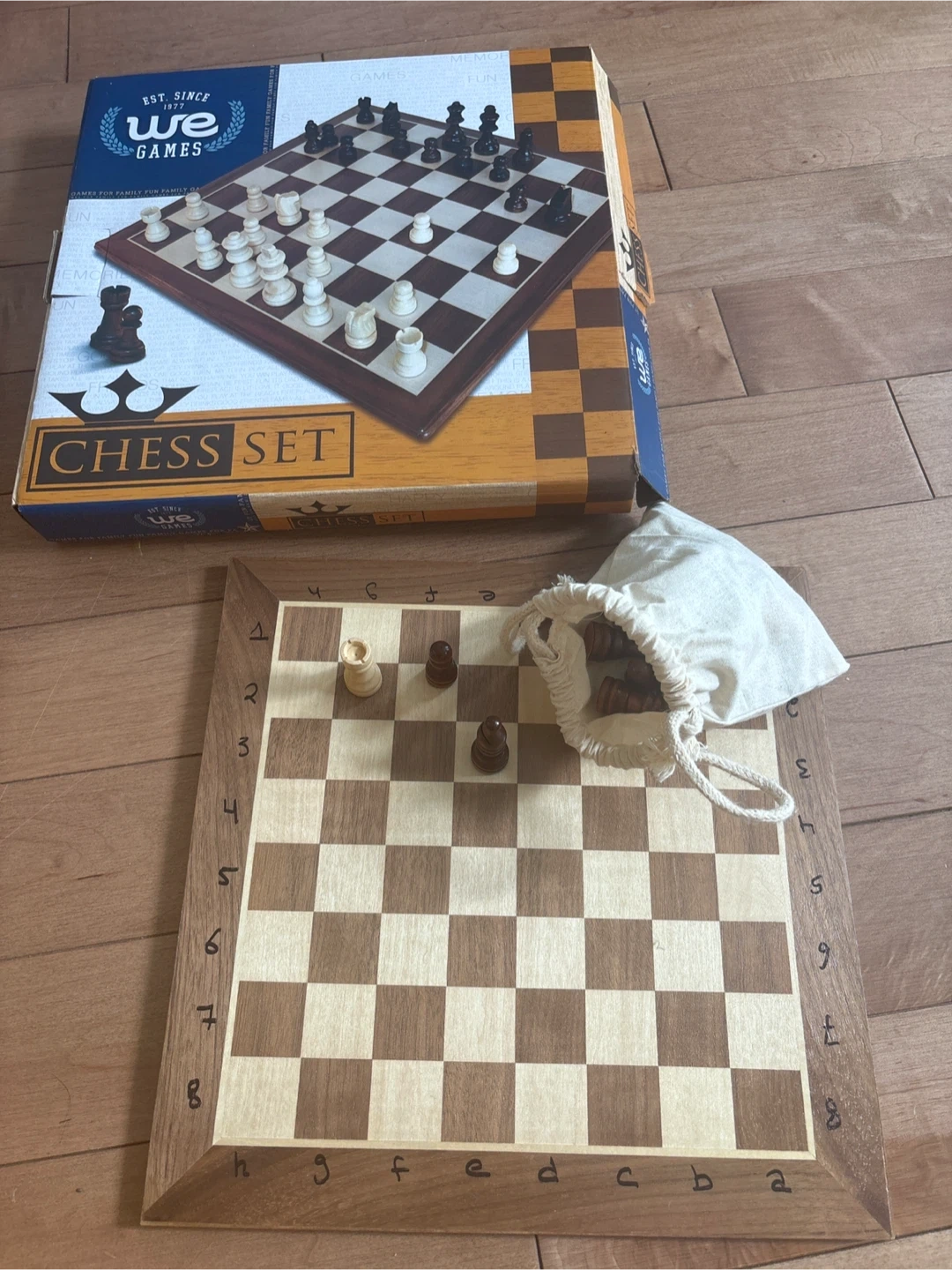 A classic wooden chess set for hours of strategic fun. Includes all the pieces and a drawstring bag for storage. Perfect for game nights and improving critical thinking skills!