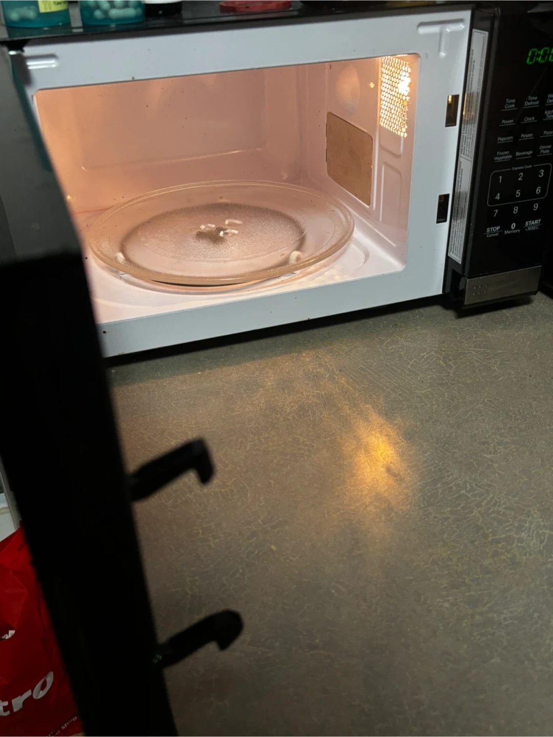 Black Master Chef microwave oven with a digital display and various cooking presets.