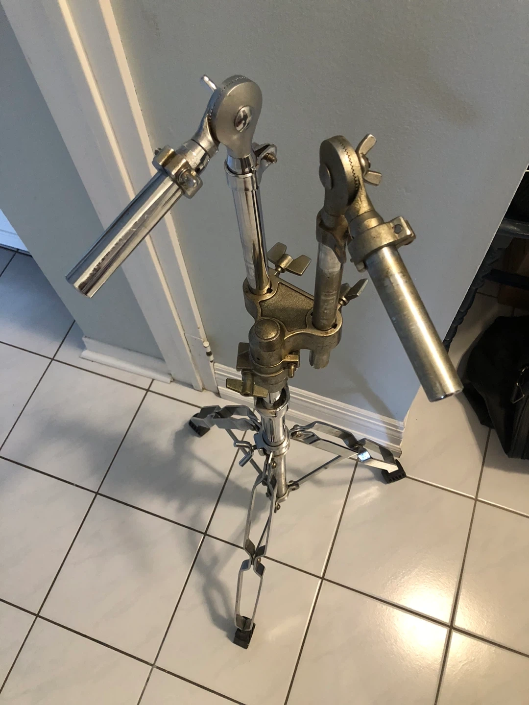 I cleaned the left arm when I thought I might be using it… so you’ll see the mid clamp is not tarnished, it’s just dirty from age/years of storage.
