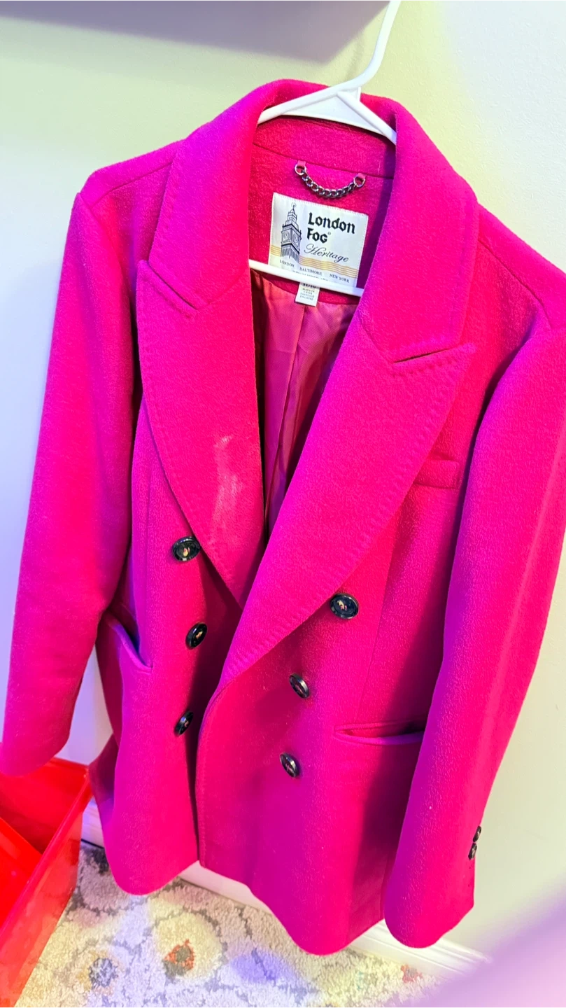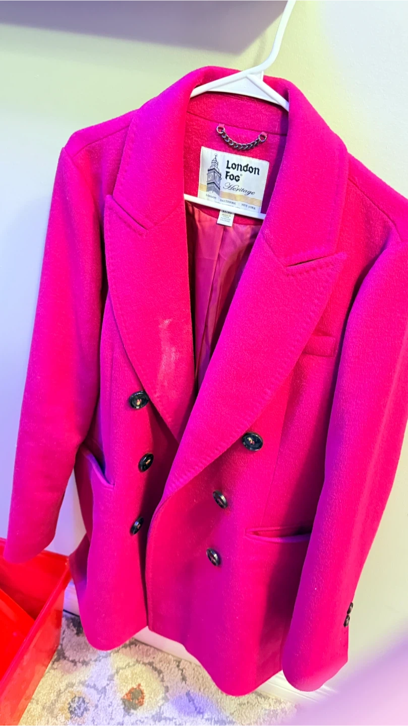 Selling a London Fog Heritage coat in a vibrant pink colour! It's a stylish double-breasted design, perfect for adding a pop of colour to your wardrobe. This coat is in great condition and ready for a new owner!