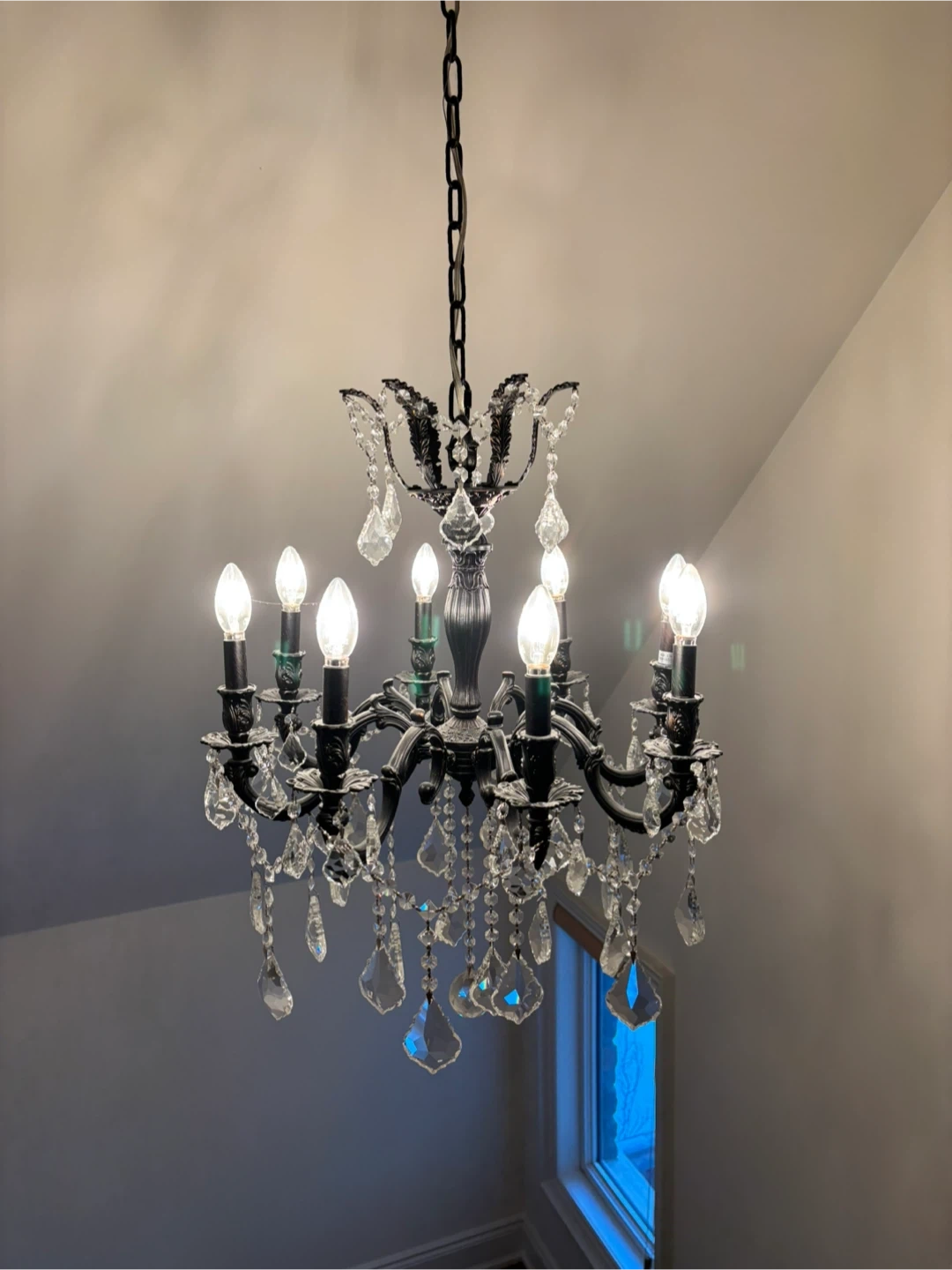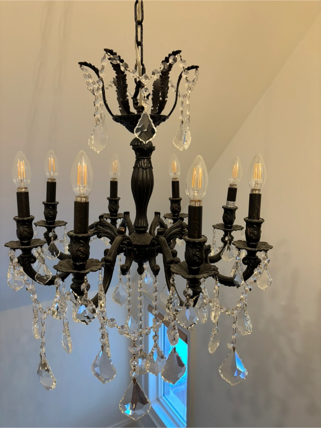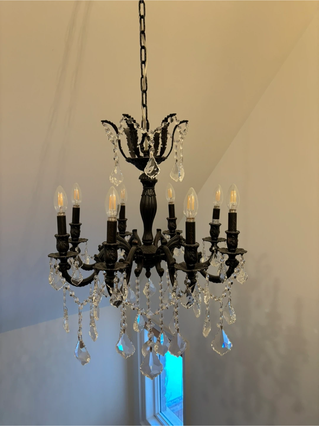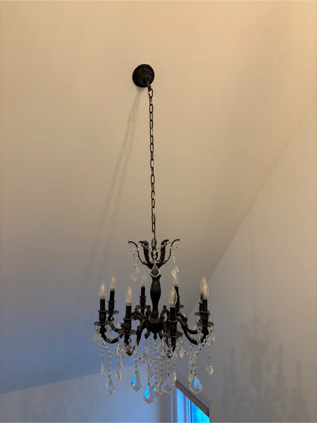 Selling a beautiful chandelier with crystal accents! It would add a touch of elegance to any room. It's in great condition and ready to brighten up your space