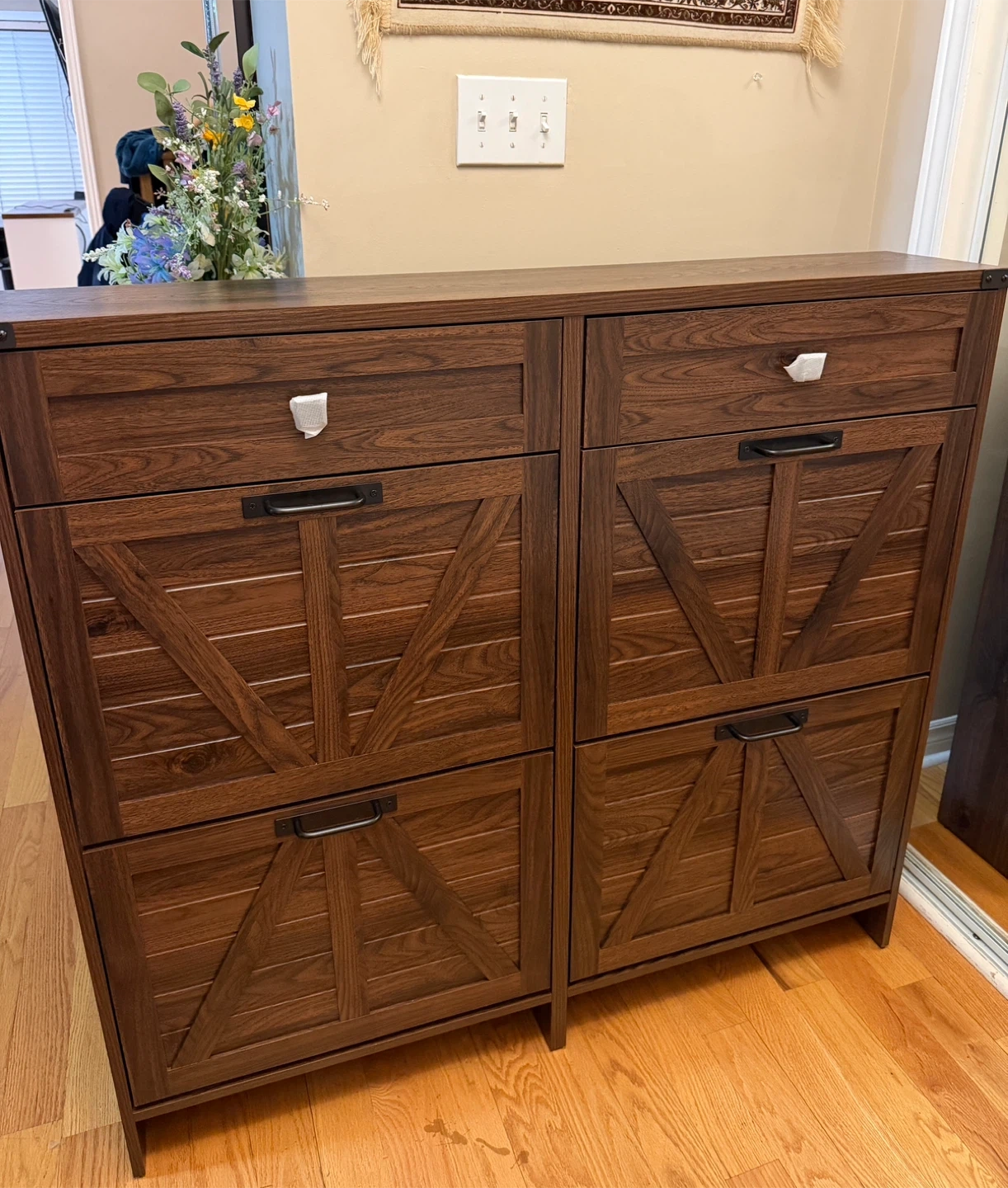 Dark Wood Entryway Shoe 4 Cabinets and 2 Drawers