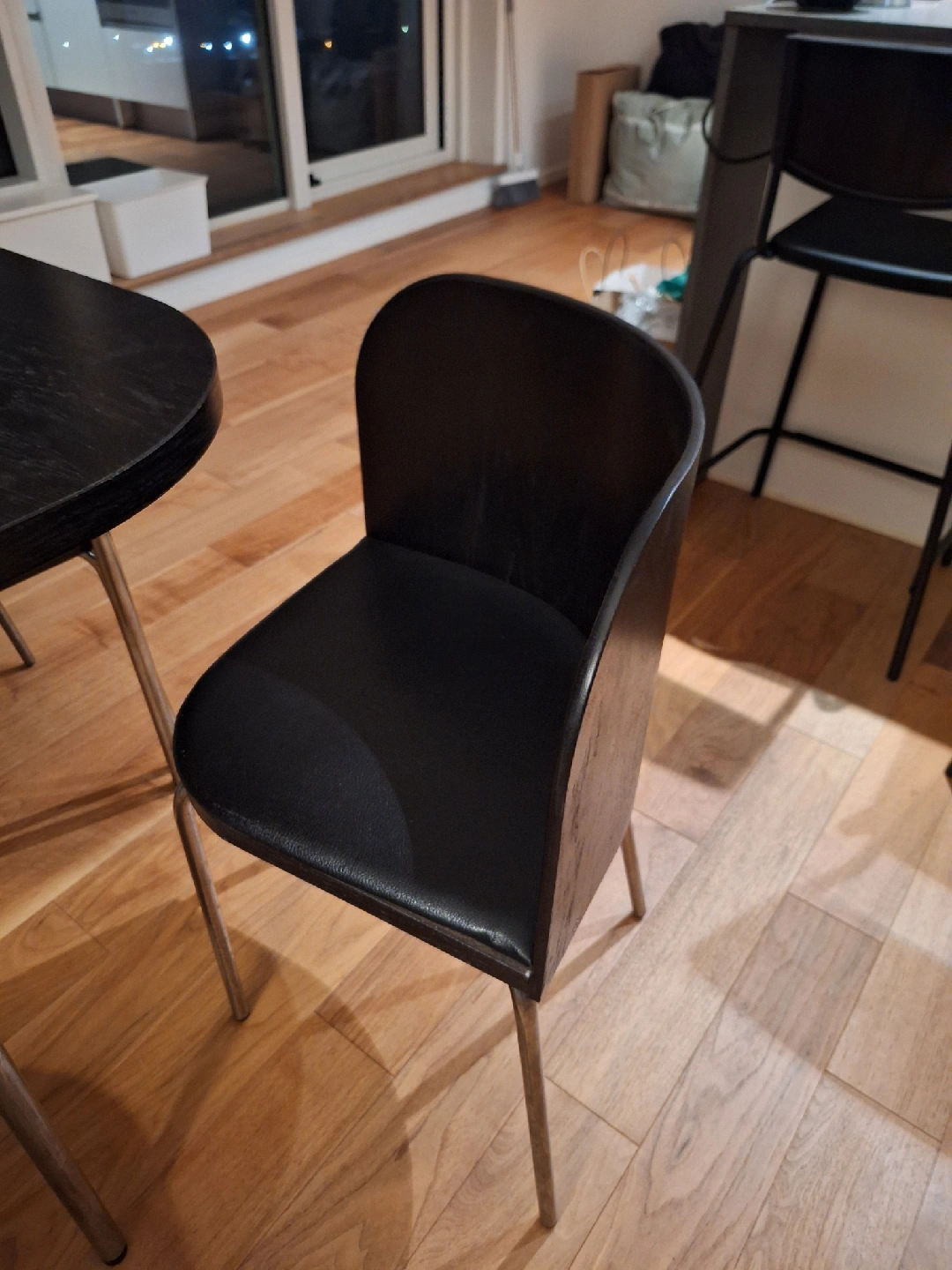 They're in great condition and would look great in any dining space! The chairs have a sleek, modern design with metal legs.