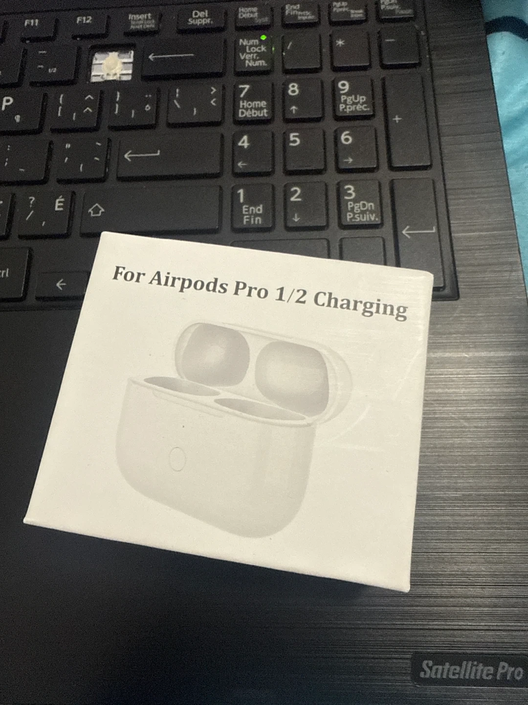 This is a replacement charging case for your AirPods Pro 1st or 2nd generation. It's white and includes the charging case itself. A green light indicates it's charging. This case is perfect for when your original charging case is lost or not working.