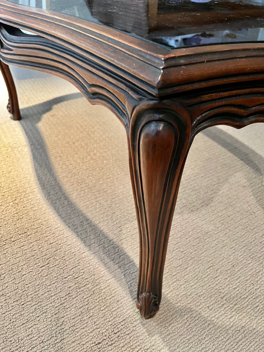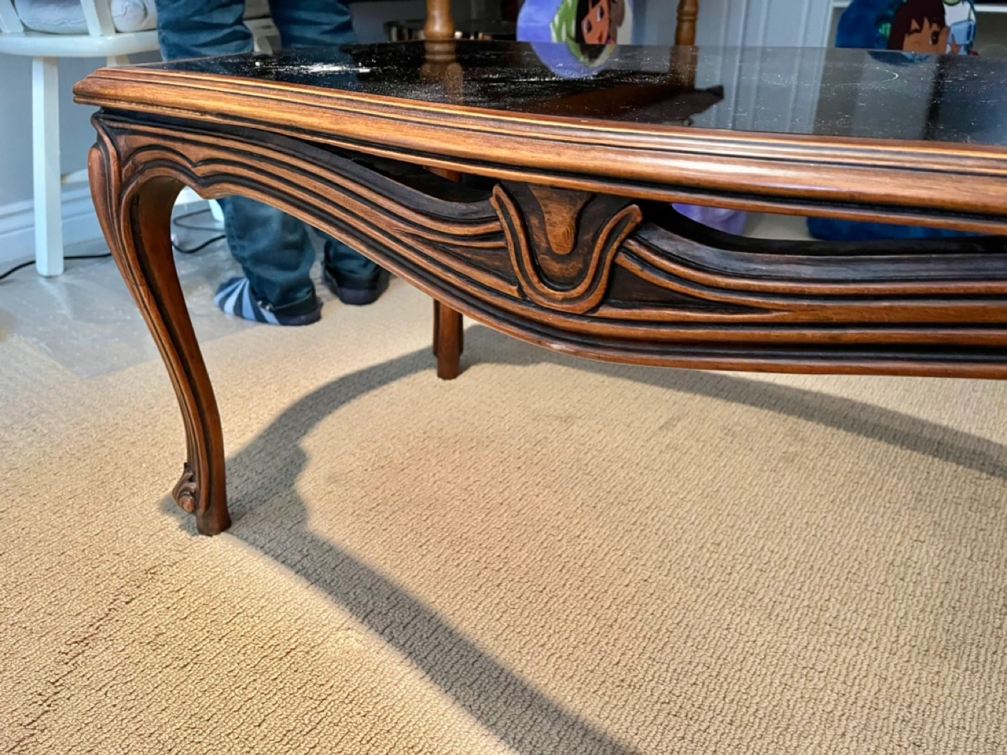 Perfect condition solid wood and glass top antique table! Hand-carved classic piece. We just no longer have room for it. It’s a beautiful piece!