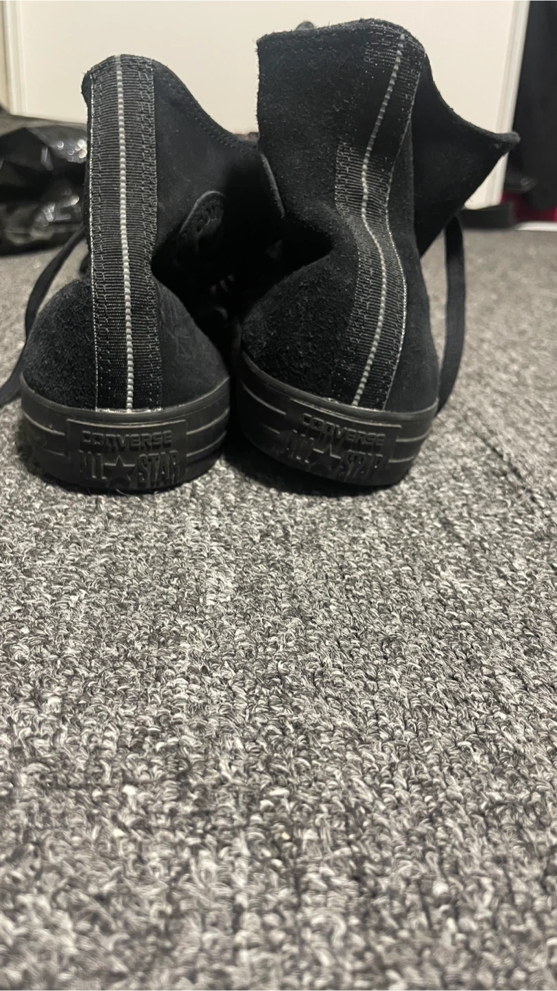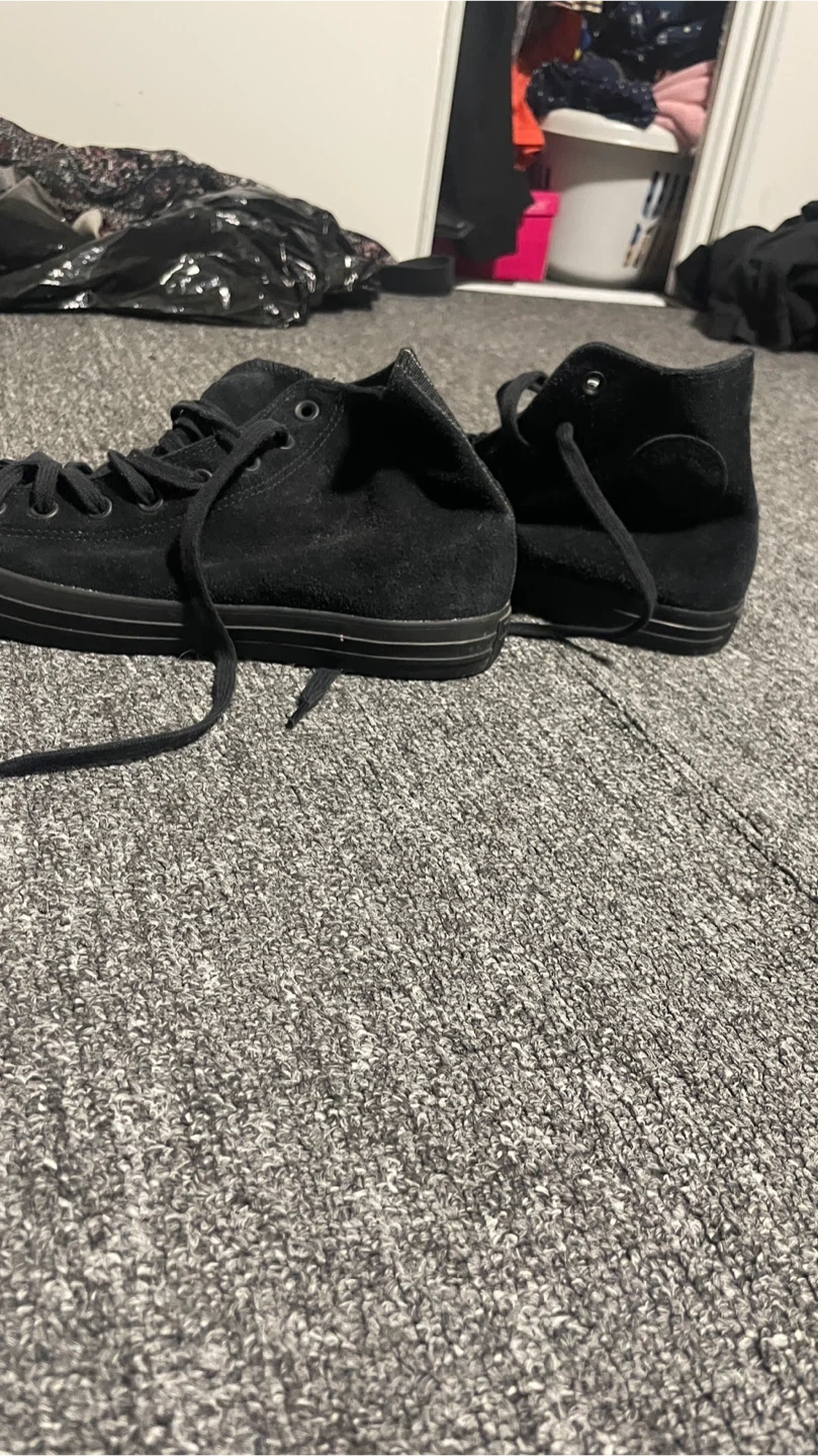 Selling a pair of Converse Chuck Taylor All Star high tops in black suede. The size is Men's 9 (US). They're in great shape and ready for a new home!