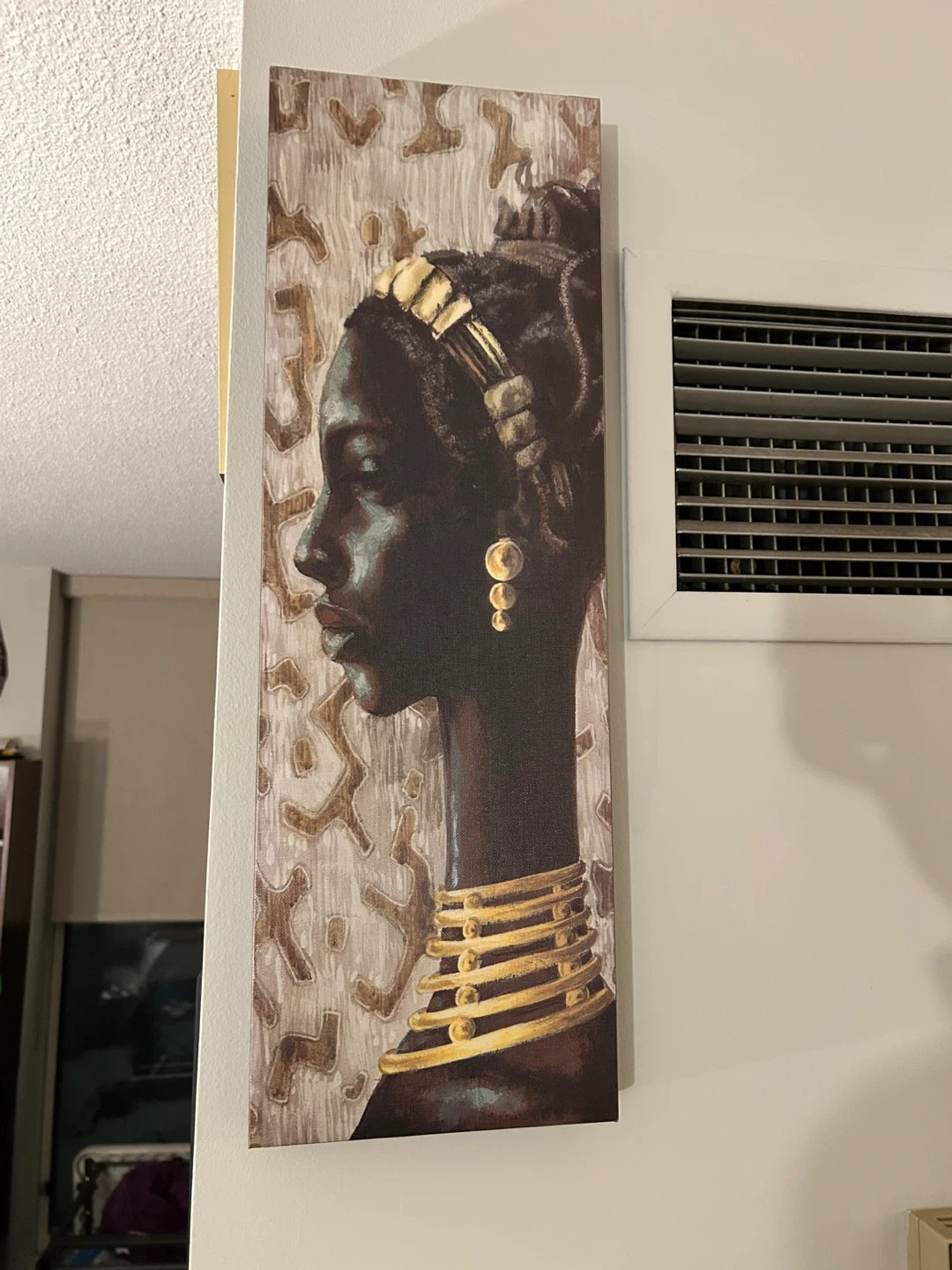 Looking to add a touch of elegance to your home? I'm selling this beautiful canvas wall art featuring an African woman. It measures 8" x 24" and is in great condition. It's perfect for adding a unique and sophisticated vibe to any room in your home