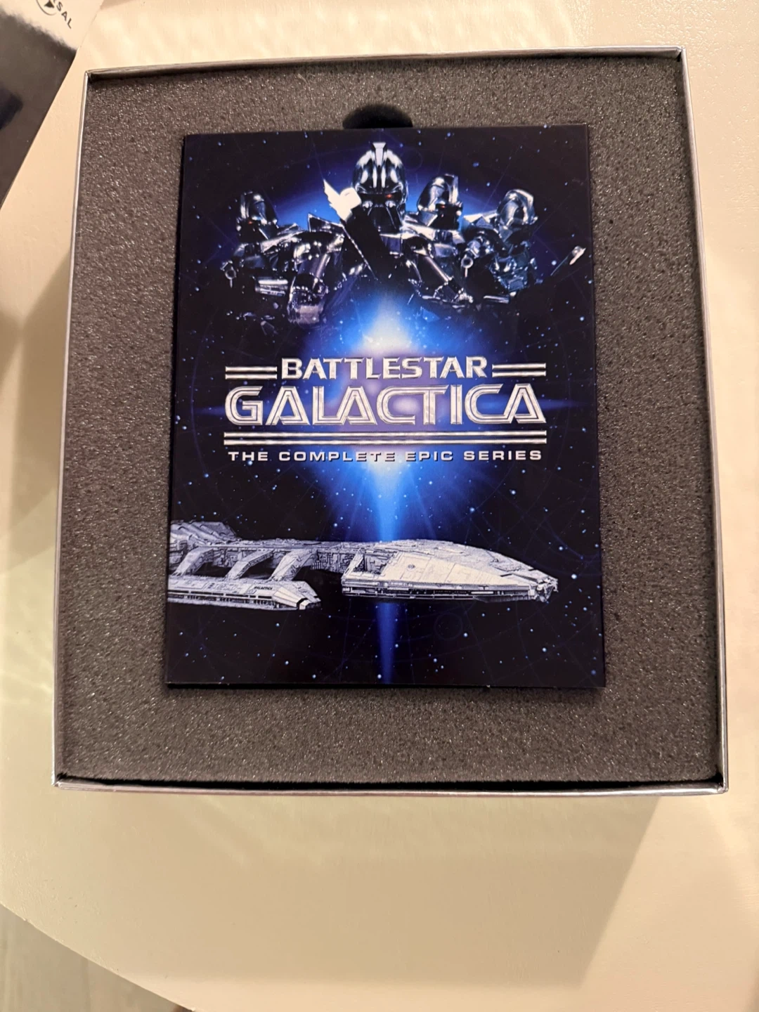 Own the complete Battlestar Galactica epic series with this collector's book and DVD set. Includes multiple discs of content and a detailed collector's book. All contents are housed in a special presentation box.