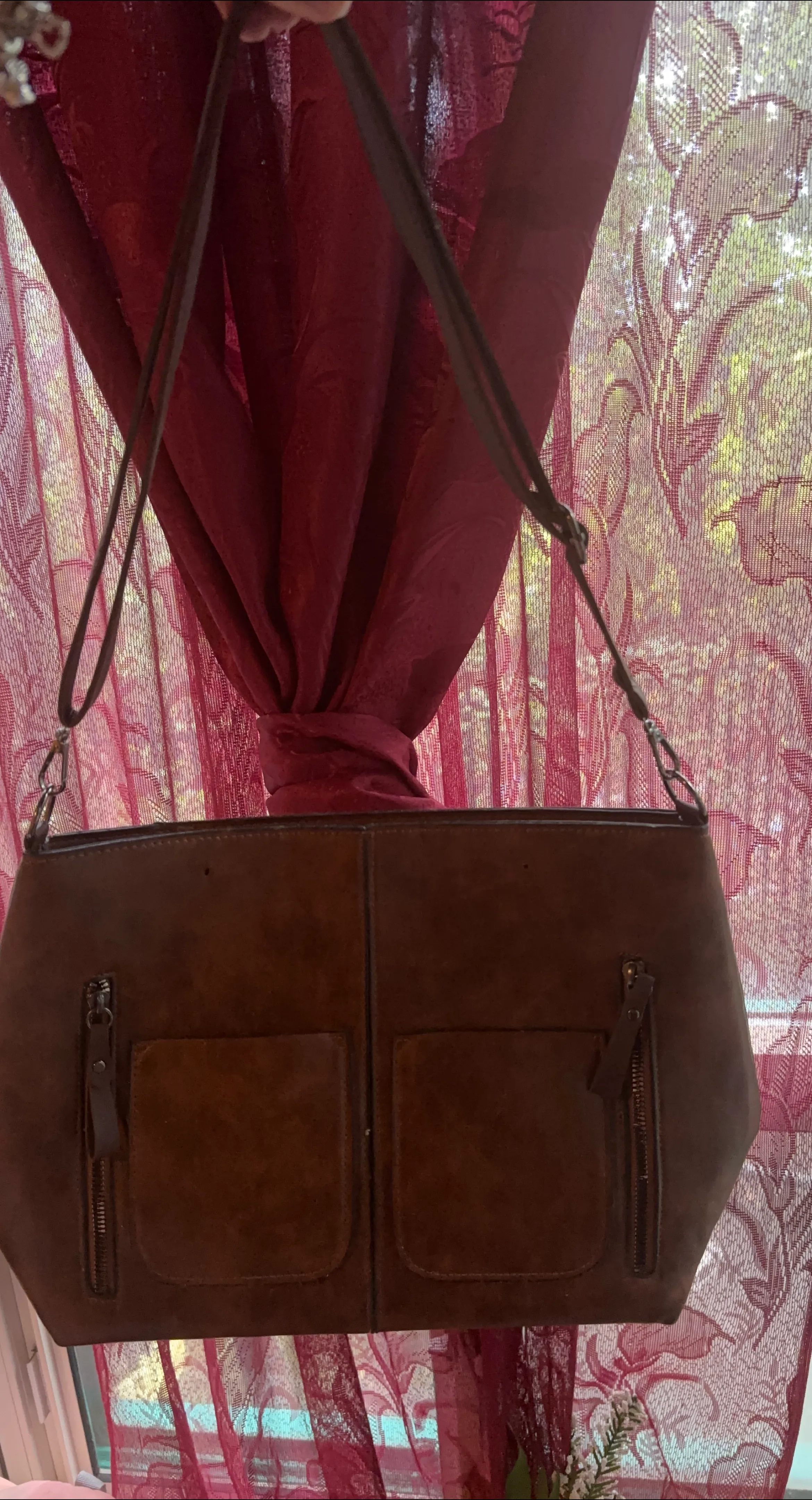 A stylish brown shoulder bag in good condition! It features a classic design with convenient pockets, perfect for everyday use. The bag has a comfortable shoulder strap and is made of a durable material. It's a great accessory to complete your outfit!