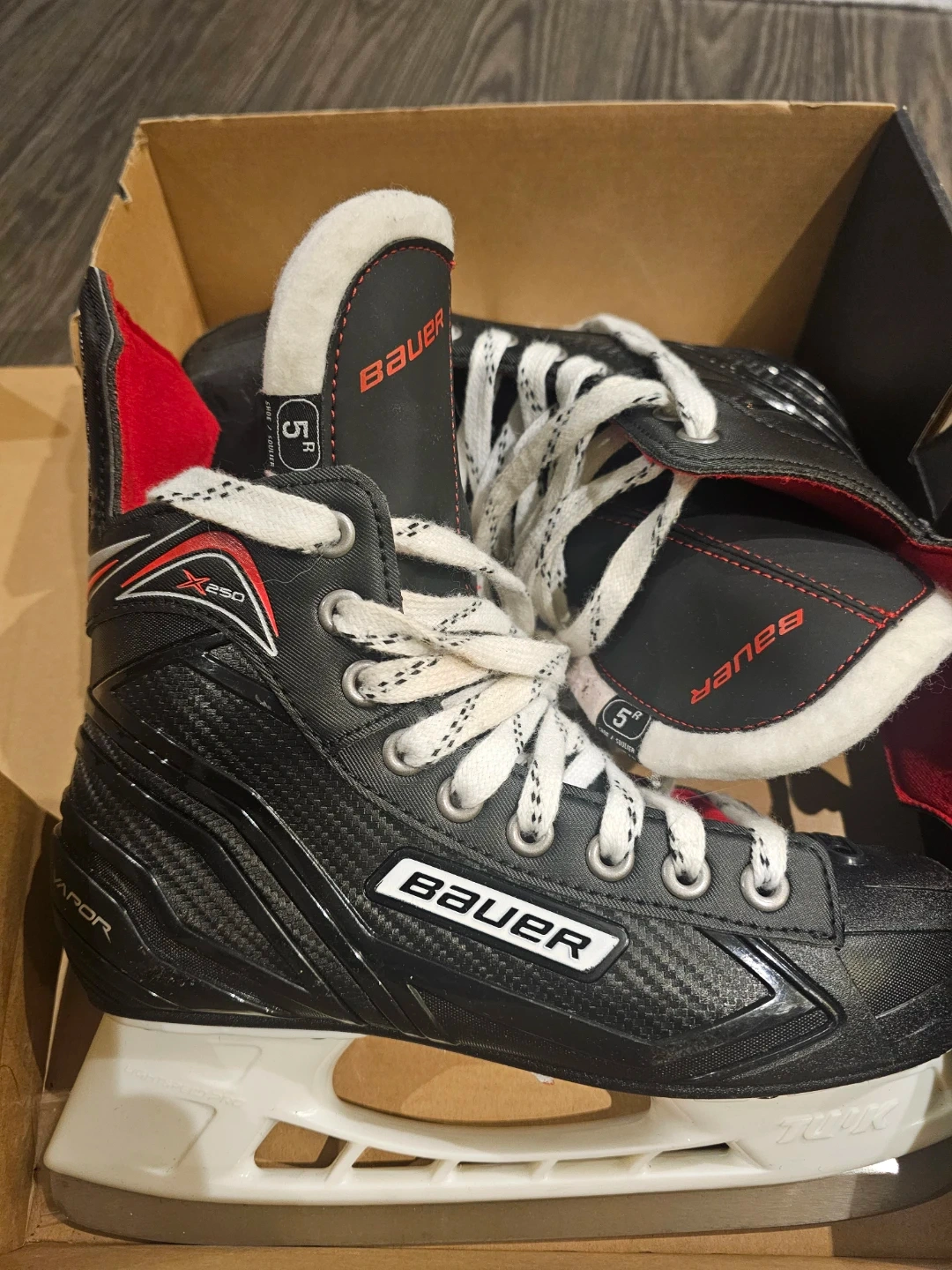 Selling a pair of Bauer Vapor X250 ice hockey skates in size 5R. They are in great shape and ready to hit the ice! The box is included too