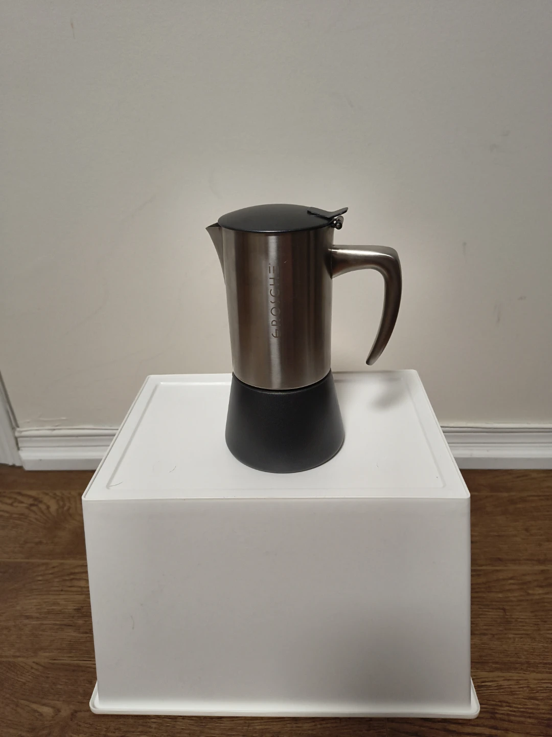 This espresso maker brews rich, authentic Italian-style coffee right on your stovetop. It's crafted from durable aluminum with a classic design. Perfect for making a few cups of strong coffee.