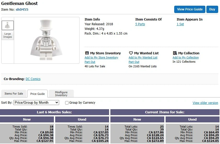 Lego Gentleman Ghost minifigure. This is a must-have for any DC Super Heroes or Lego collector looking to round out their set. Please note the white cape has some slight discoloration due to age/storage (see photos for details).