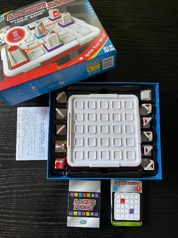 Lights and mirrors may make it feel like magic, but it’s really science and a good dose of brain power that’s needed to direct the laser beam through this series of mind challenging mazes. Get ready for a satisfying mental workout as you flex your strategic thinking muscles and ignite the light both on the grid and in your mind! Includes game grid, 60 challenge cards with varying levels of difficulty, and 11 game tokens (1 laser, 2 beam-splitters, 1 cell blocker, 1 mirror, 5 target/mirror and 1 checkpoint). Game board measures approximately 7” long x 7” wide x 1” tall. Winner of the Major Fun Award for Games and Astra Best Toys for Kids Award. Retails at Mastermind Toys for $45 plus tax, asking $35. In excellent condition, played a few times. Complete set with original box and instructions. Please see all my posts for more great finds! Pickup at Davisville station. Cash accepted.
