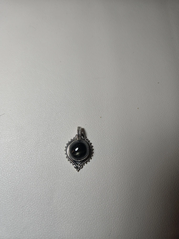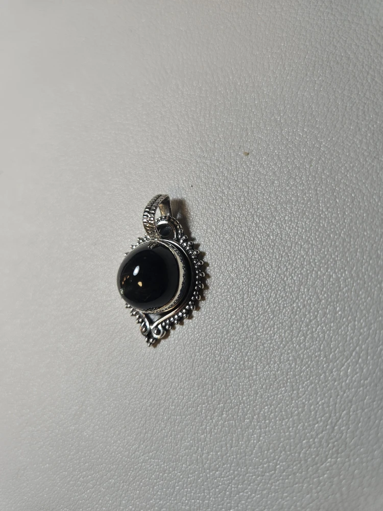 Here's a lovely black onyx pendant! It has a beautiful, classic design that would look great with any outfit.
