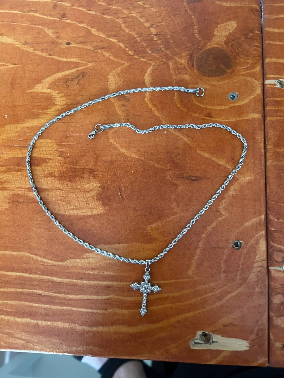 Silver-tone Rope Chain Necklace with Cross Pendant