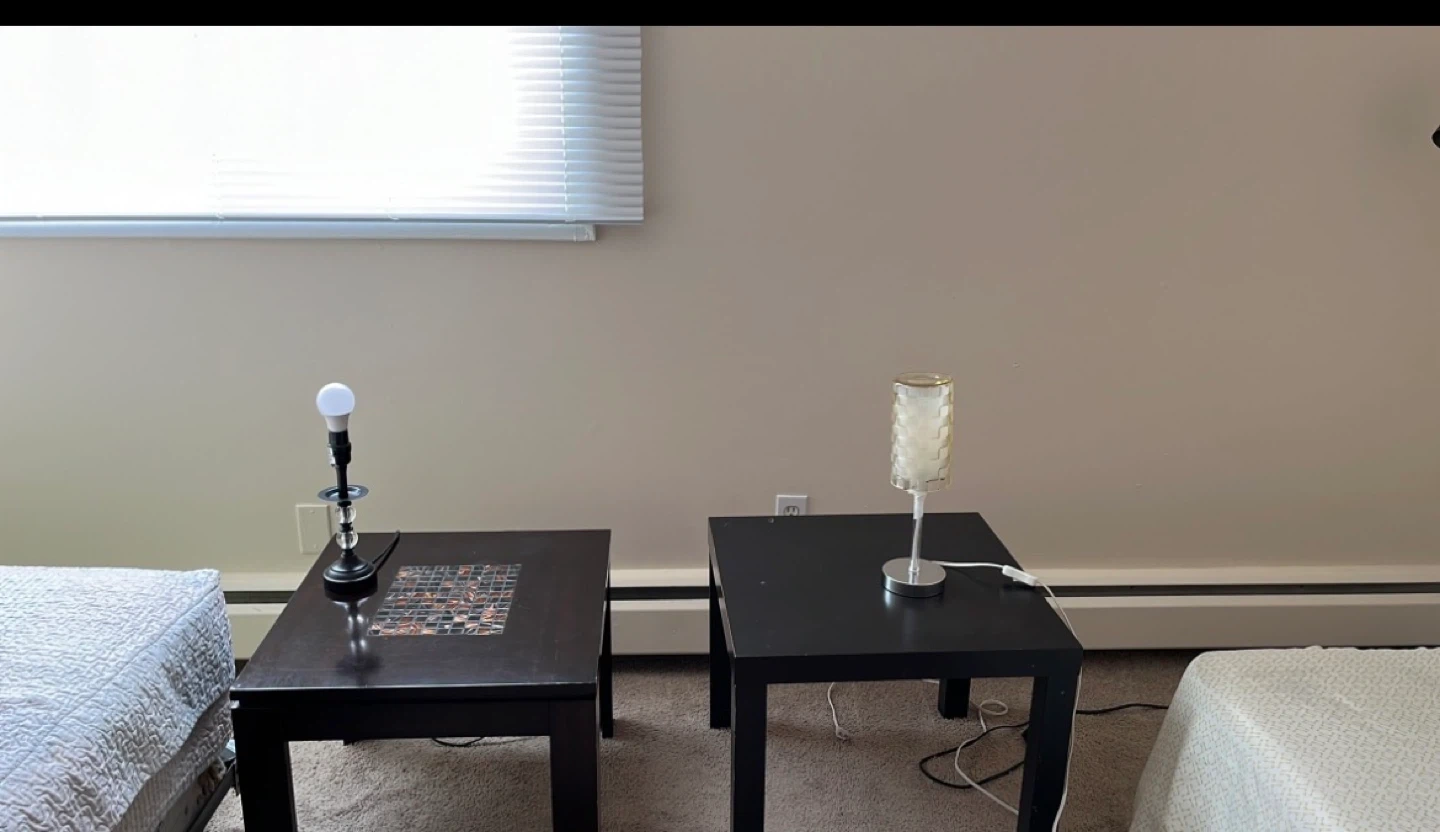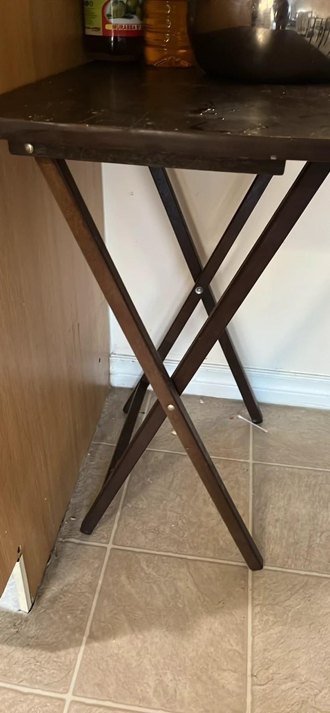 Selling a variety of furniture items! There's a rolling bar cart with glass shelves, perfect for entertaining. I also have a couple of end tables and a nightstand available. Plus, a Canon printer is up for grabs if anyone needs ones everything is free