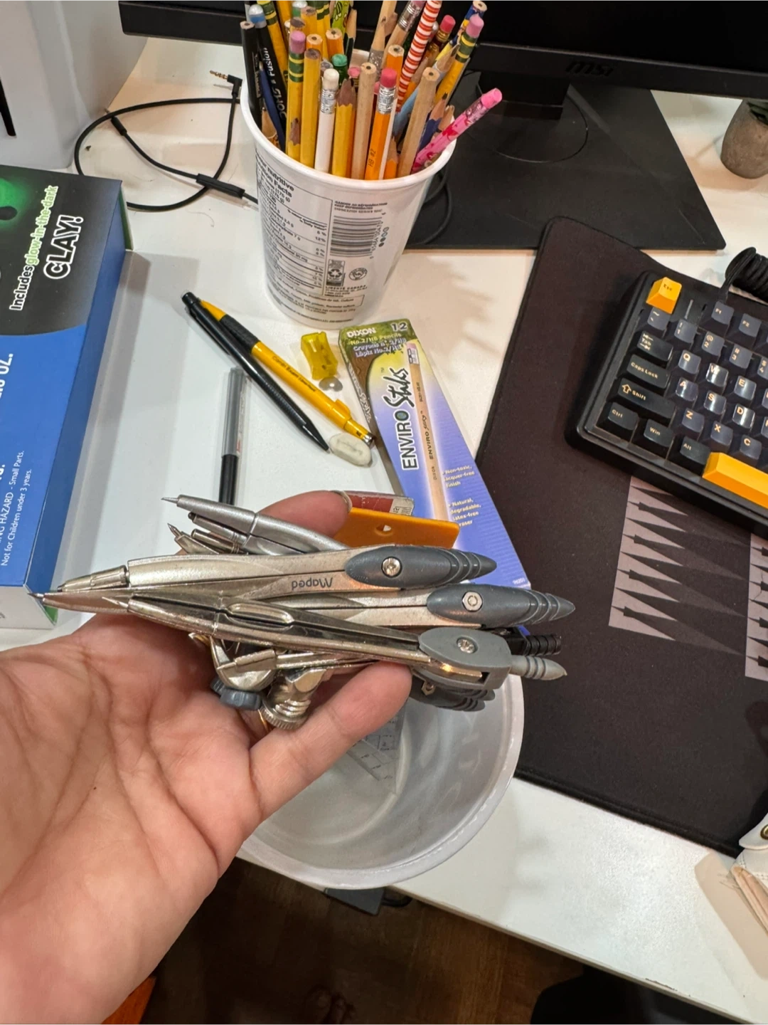 This set includes various rulers, triangles, and a compass for drafting and geometry work. It's suitable for technical drawing and math applications.