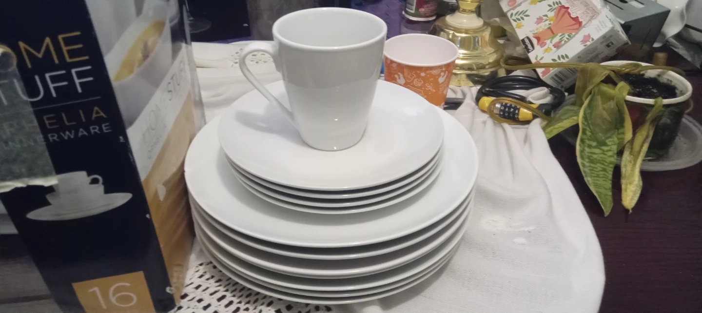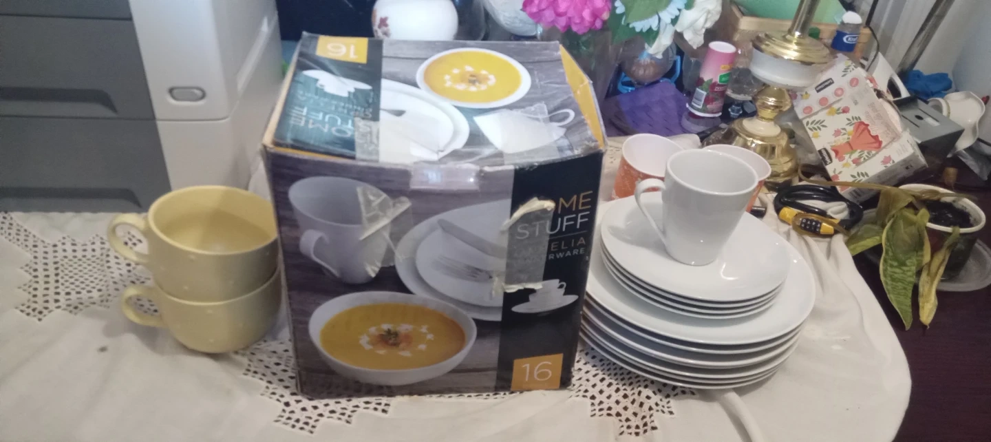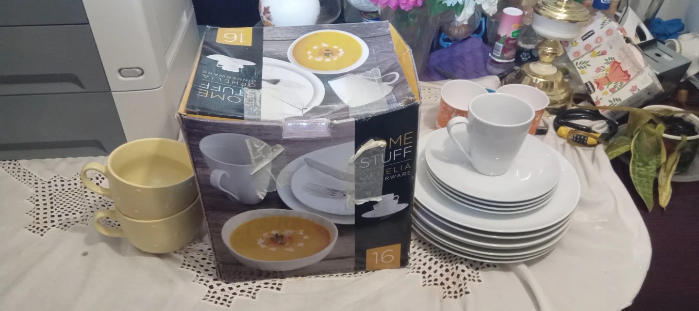 Selling a brand new Home Stuff Ophelia 16-piece dinnerware set! It's a complete set for your dining needs and comes in its original box