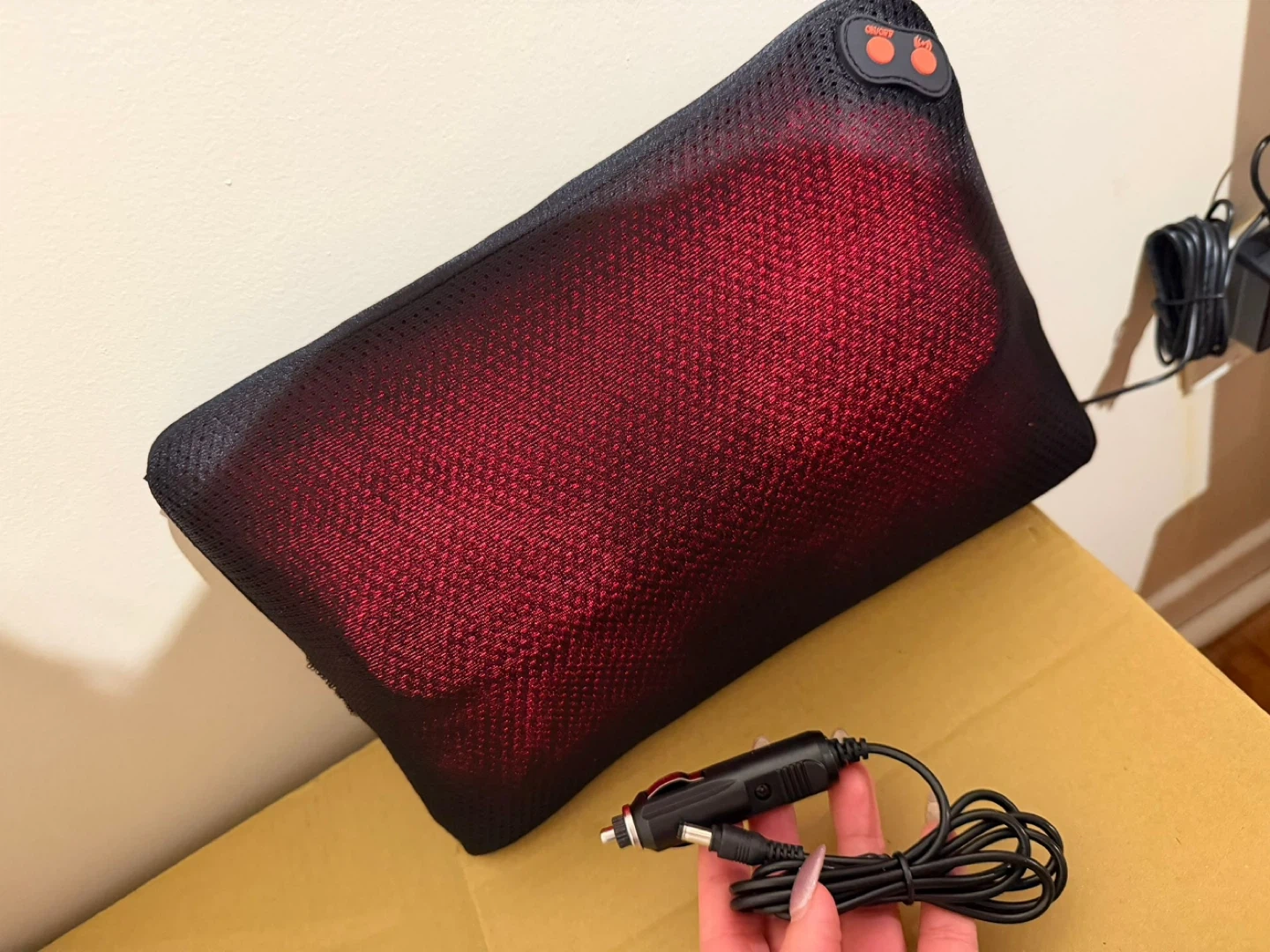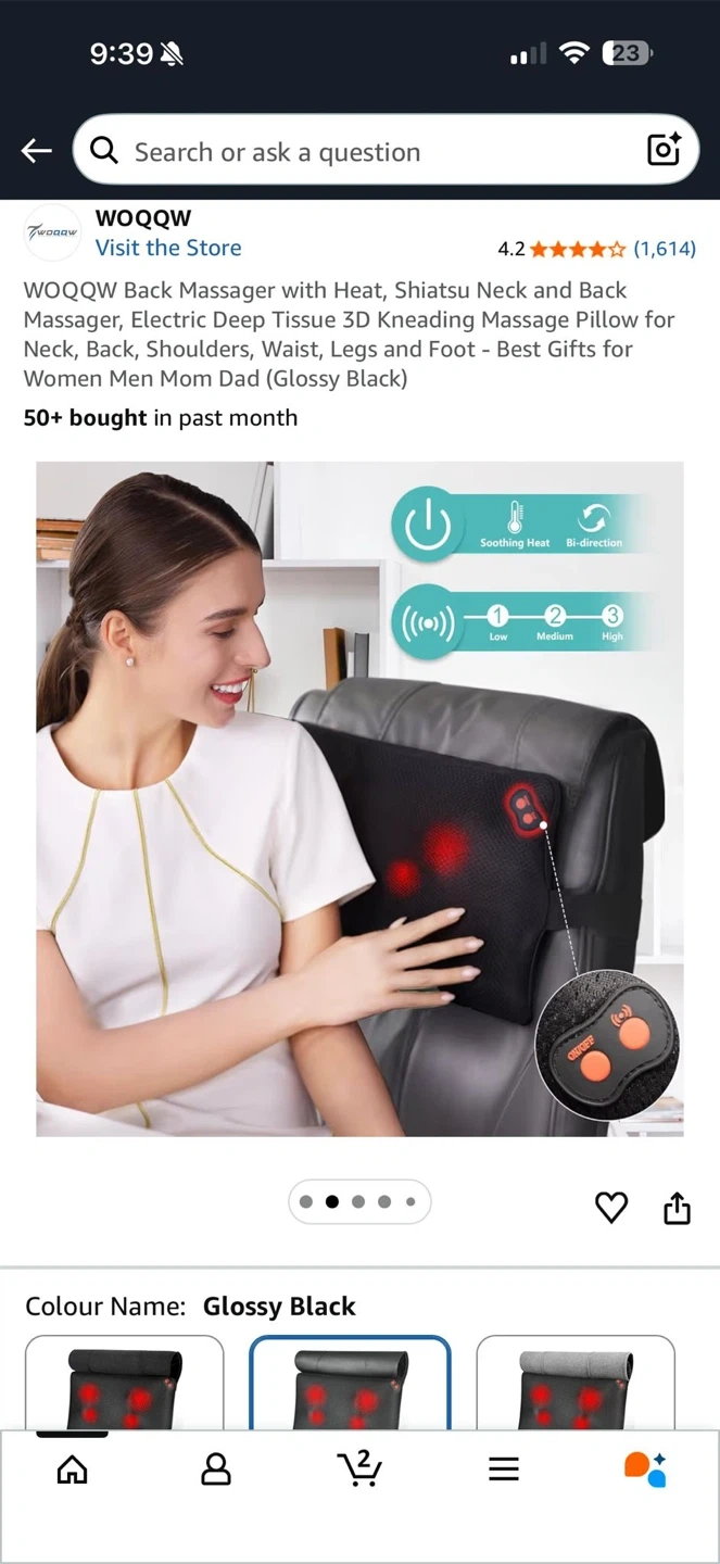 This WOOQQW back massager has soothing heat and bi-directional kneading. It offers three intensity levels for a deep tissue massage. Comes with a car adapter for use on the go.