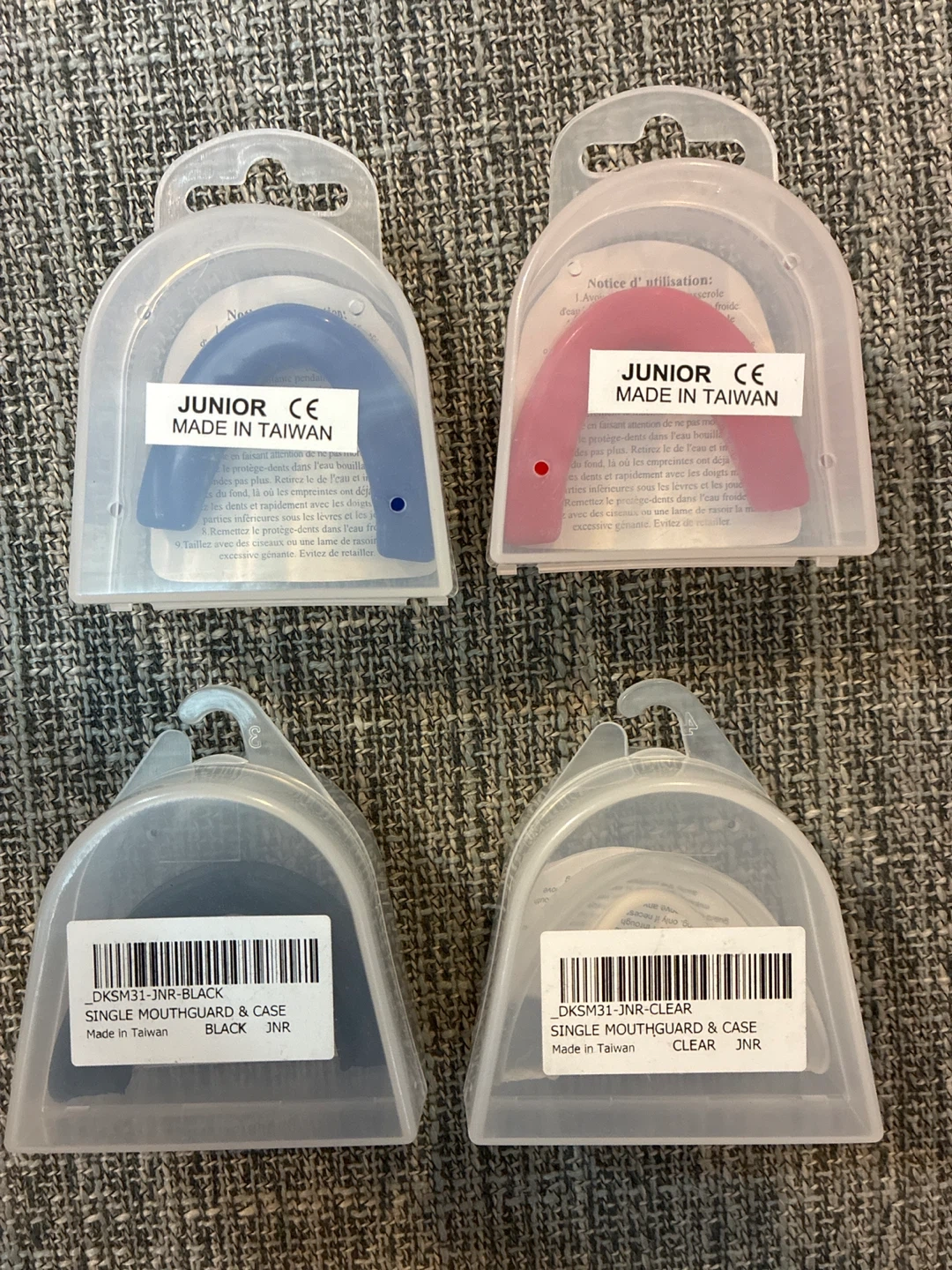 Selling brand new junior mouthguards in the case. 4 colour options available, black, blue, red and clear Perfect for junior athletes!