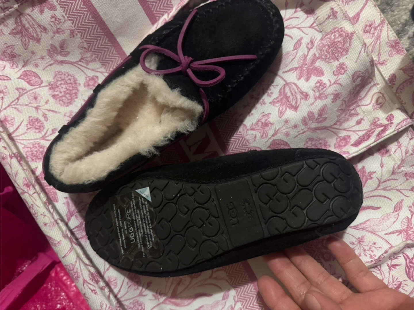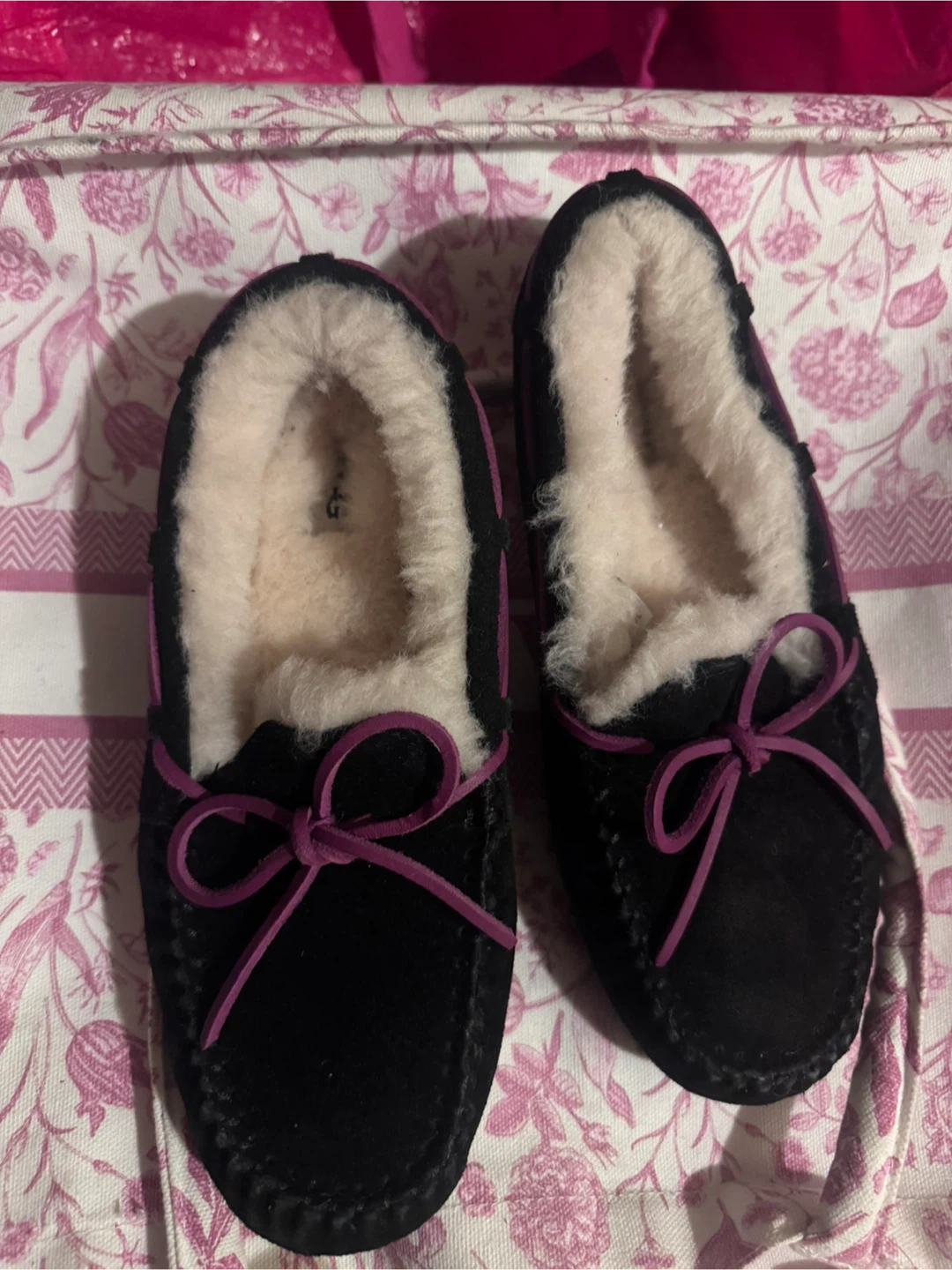 Buy & SellUGG Black Suede Sheepskin Lined Moccasin Slippers Size 4UGG Black Suede Sheepskin Lined Moccasin Slippers Size 4$20These UGG moccasin slippers are black suede with a sheepskin lining. They have a purple bow accent. Size is 4.ConditionNewSizeUSA 4 Eur36BrandUGGWHERE TO MEETCheck LocationView MapSELLERverifiedAnnaMimico38332 reviews0 chats·1 favorites·22 viewsSEND CHAT TO SELLERHi Anna! I’m interested in your listing.Hi Anna! I’m interested in your listing.Get the Karrot app to chatSign In to chat