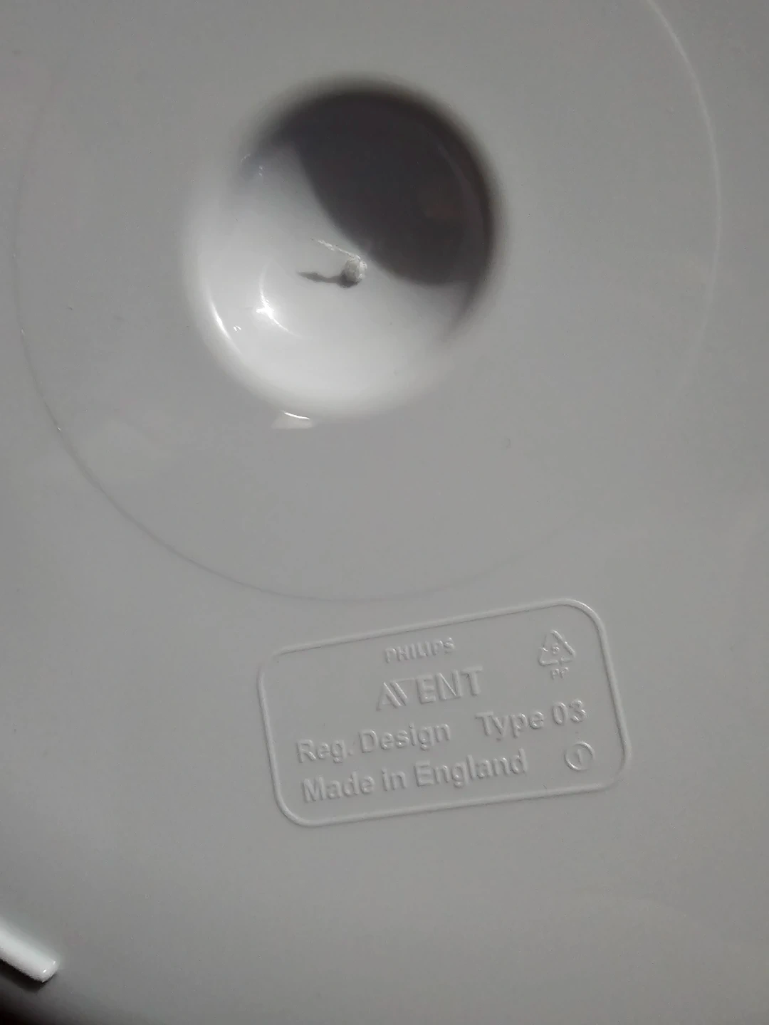 Philips AVENT bottle sterilizer for baby bottles. Reg. Design Type 03. Made in England. It's a convenient way to sterilize baby bottles quickly and efficiently. It's designed to hold multiple bottles at once.