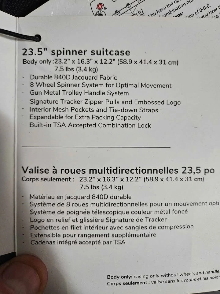 Tracker Rolling Suitcase – TSA Lock – New w/ Tags