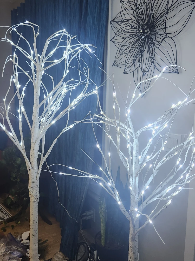 Add a touch of whimsy to your home with these charming light up birch trees .