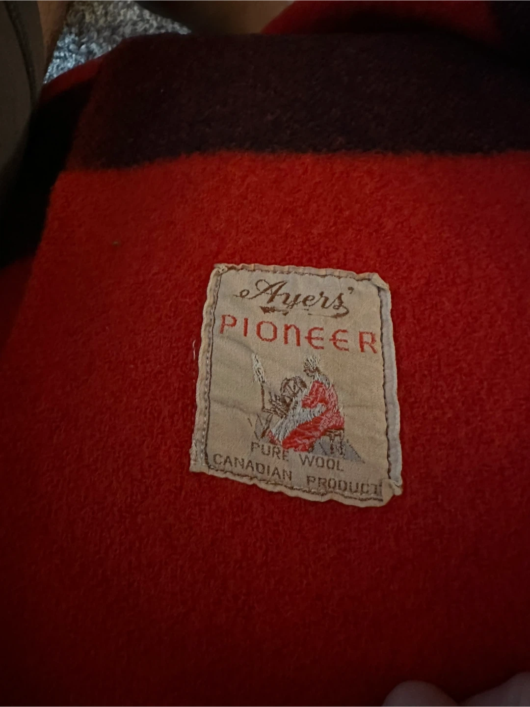 Selling a lovely Ayers Pioneer pure wool blanket! It's a vibrant red colour with a dark brown stripe. This Canadian product is in good condition and ready to keep you cozy. It was a gift but never used. Just in storage for years.