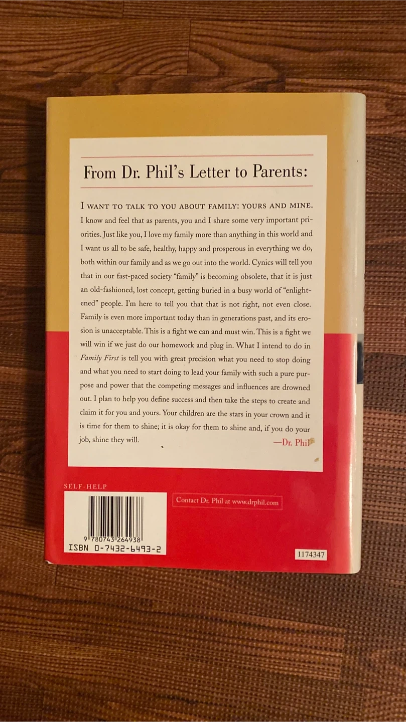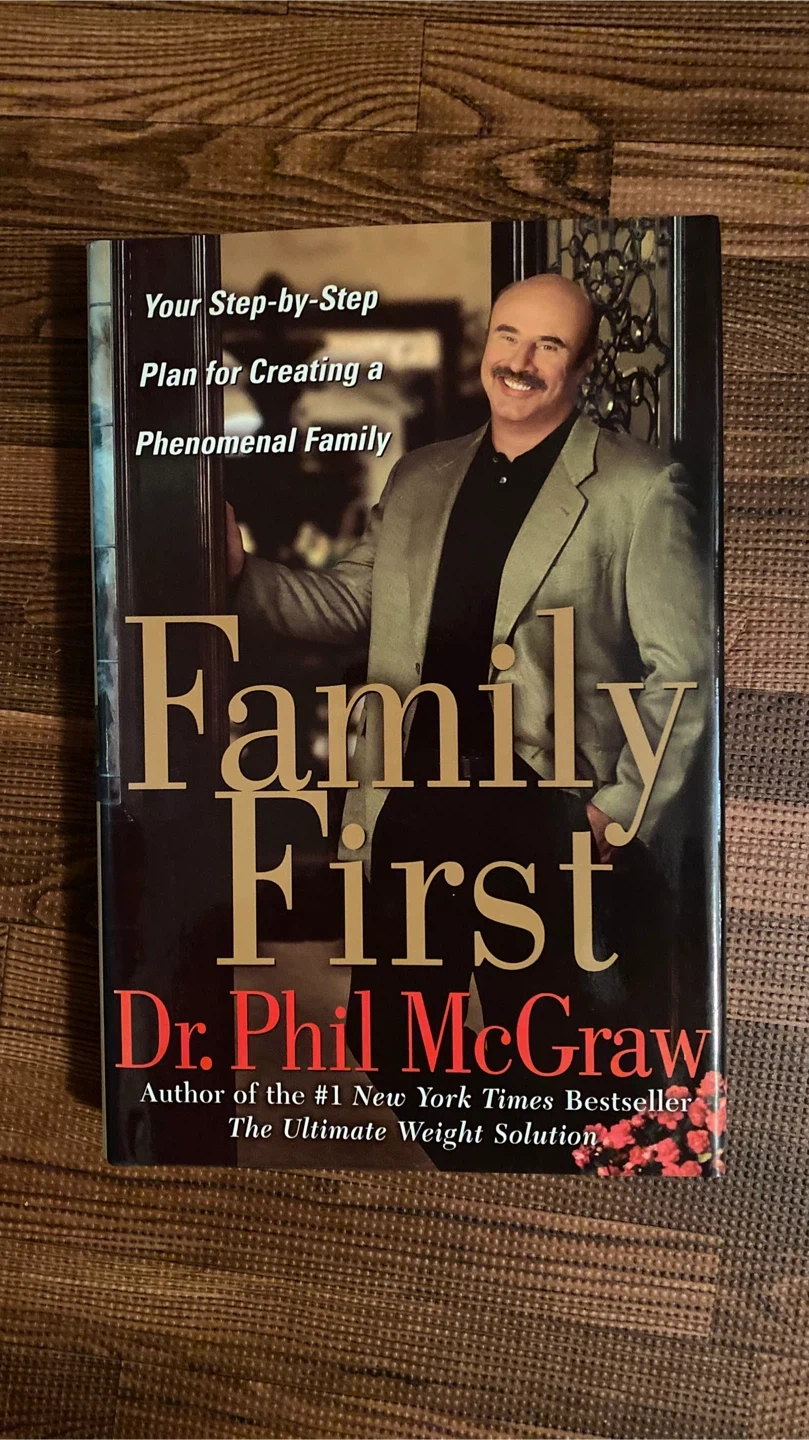This is a book titled Family First by Dr. Phil McGraw. It offers a step-by-step plan for creating a phenomenal family. The back cover includes a letter from Dr. Phil to parents discussing the importance of family.