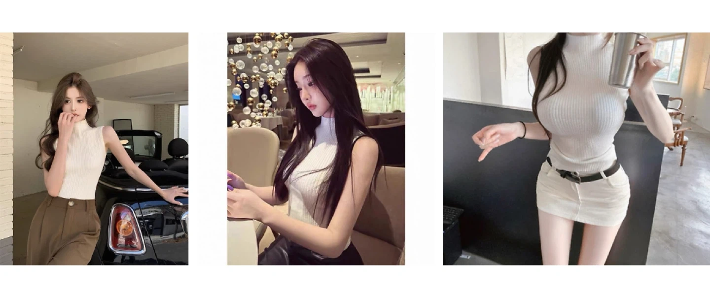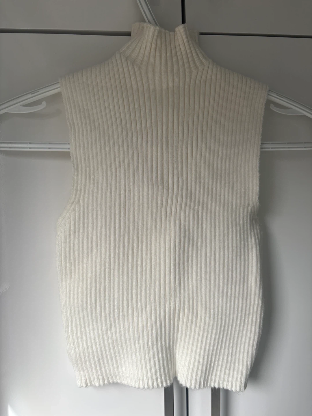 White Ribbed Mock Neck Sleeveless Top