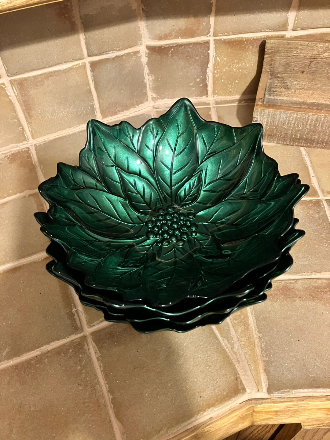 Selling a set of 4 beautiful green poinsettia-shaped bowls. It would be perfect for holiday decor or serving dish. New