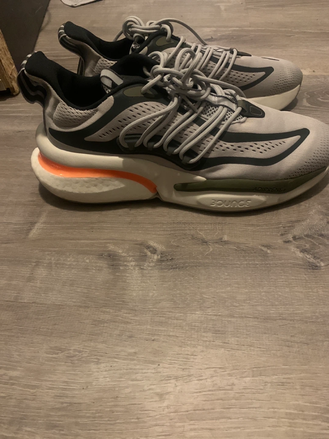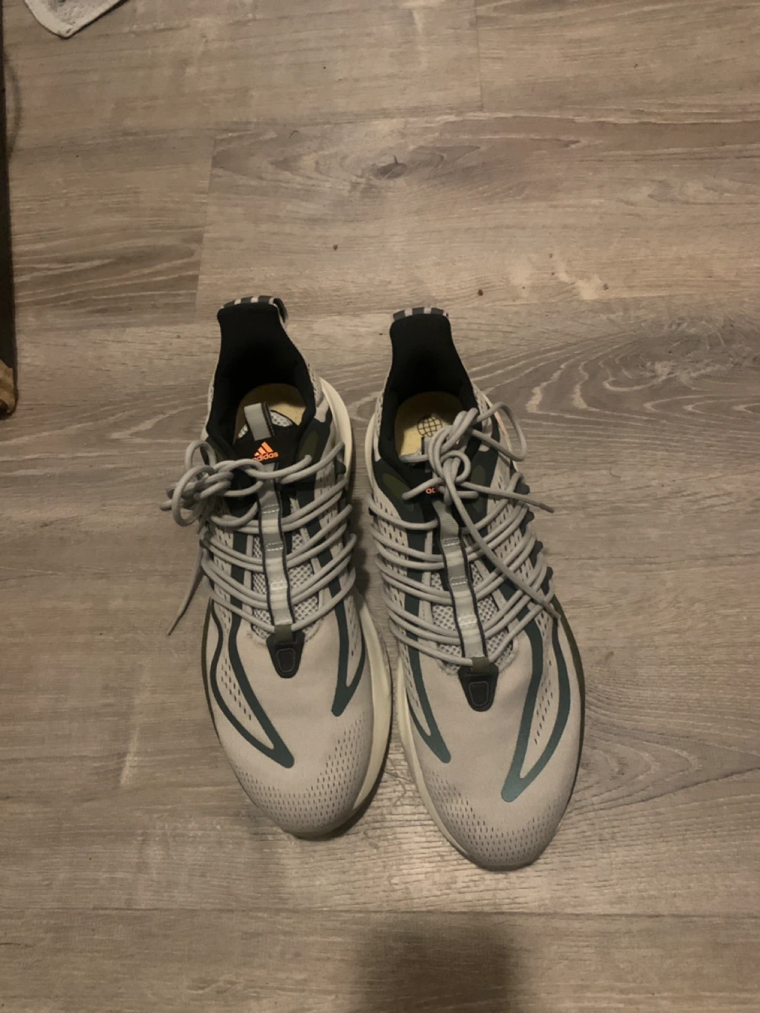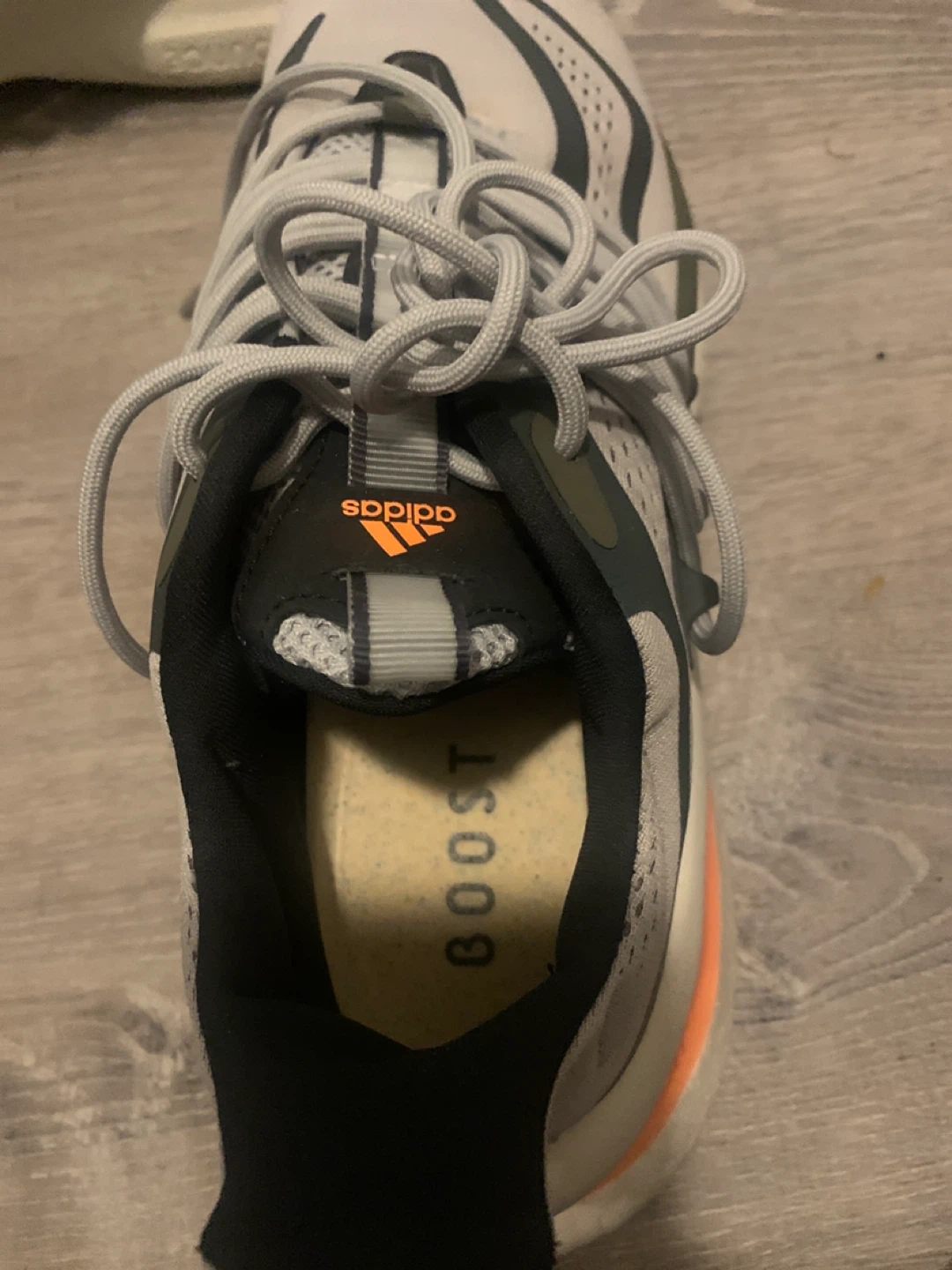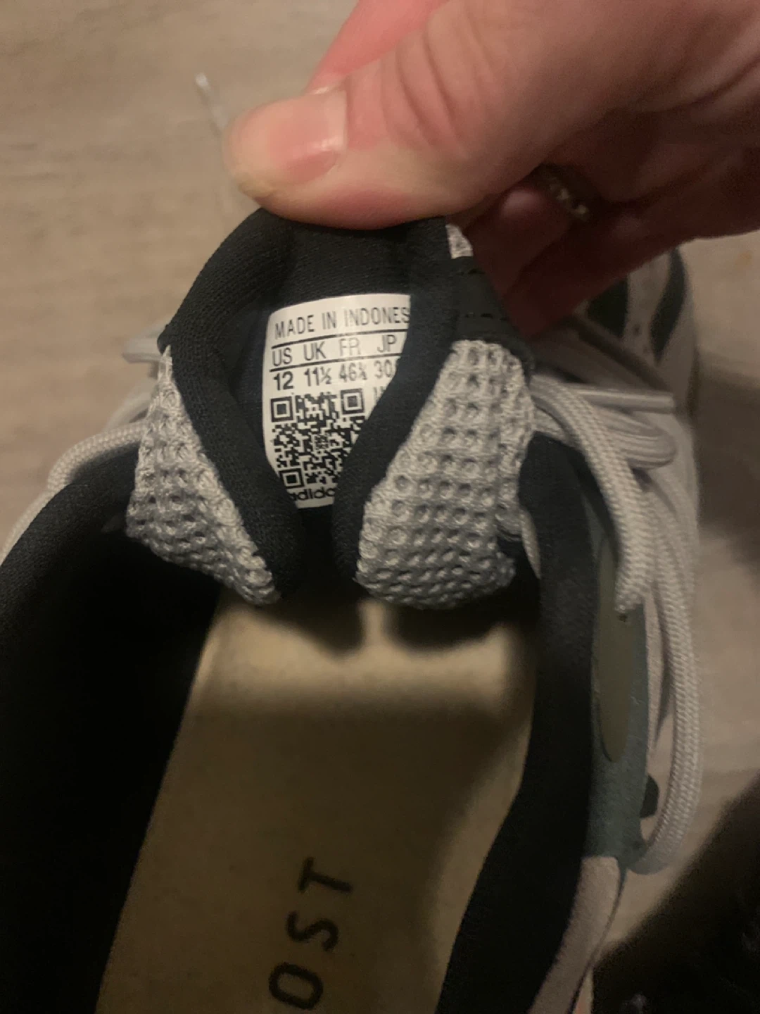 Adidas men's running shoes. Features "BOOST" technology in the sole for cushioning. Made in Indonesia. Size US 12, UK 11.5, FR 46, JP 300.