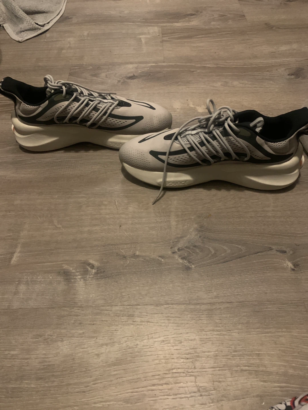 Adidas men's running shoes. Features "BOOST" technology in the sole for cushioning. Made in Indonesia. Size US 12, UK 11.5, FR 46, JP 300.