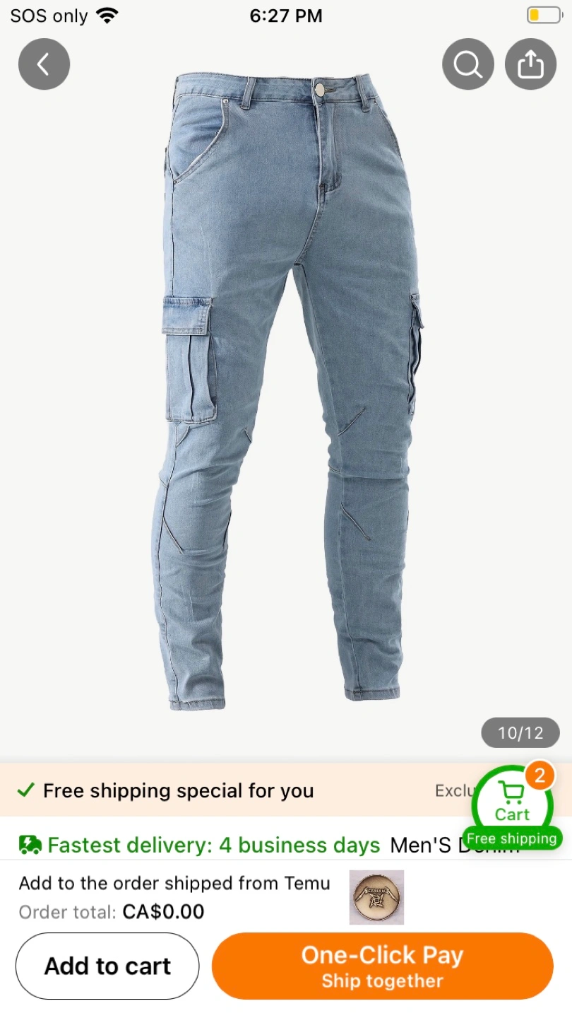 Men's XXL Light Wash Cargo Jeans
