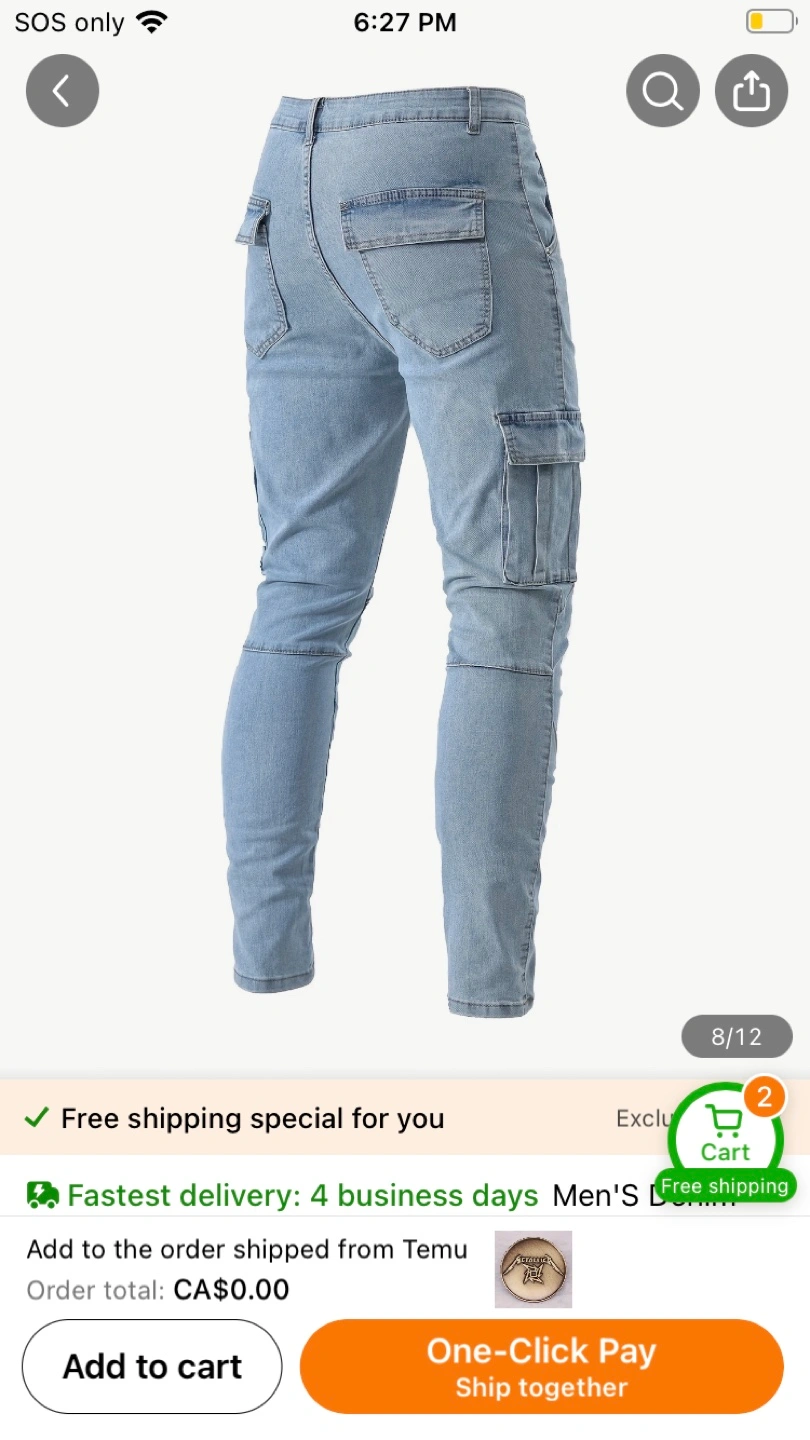Men's XXL Light Wash Cargo Jeans