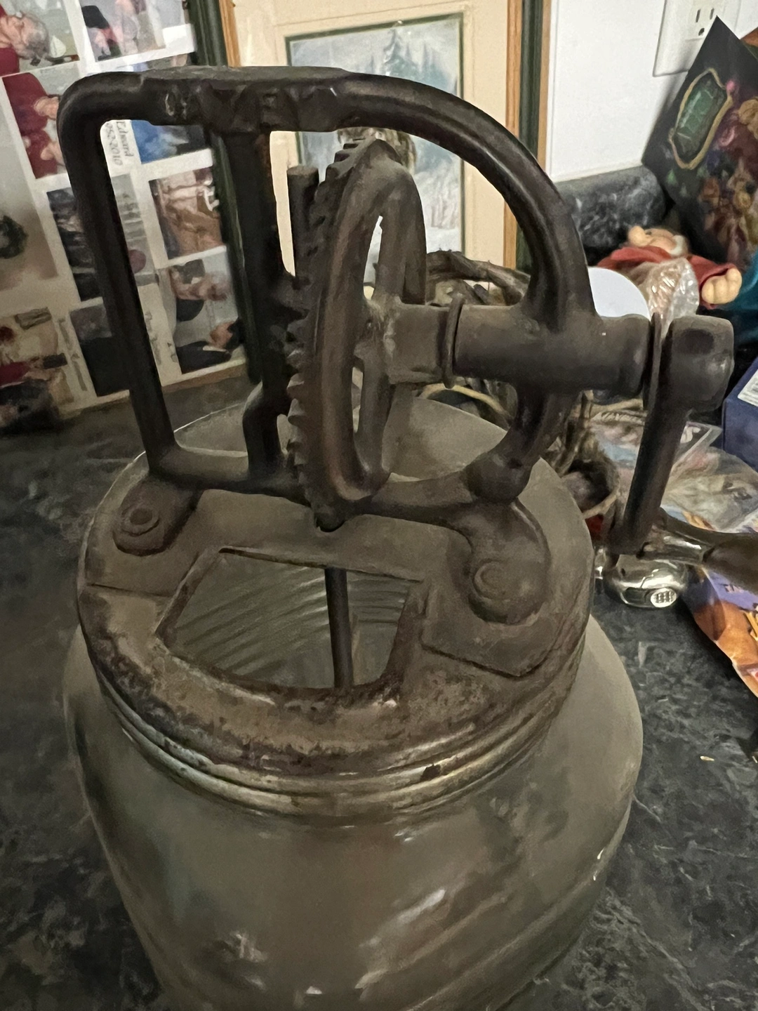 Vintage glass butter churn from the early 1900’s. No chips or damage to the glass. Missing the screen on top but is in excellent condition. Asking $75