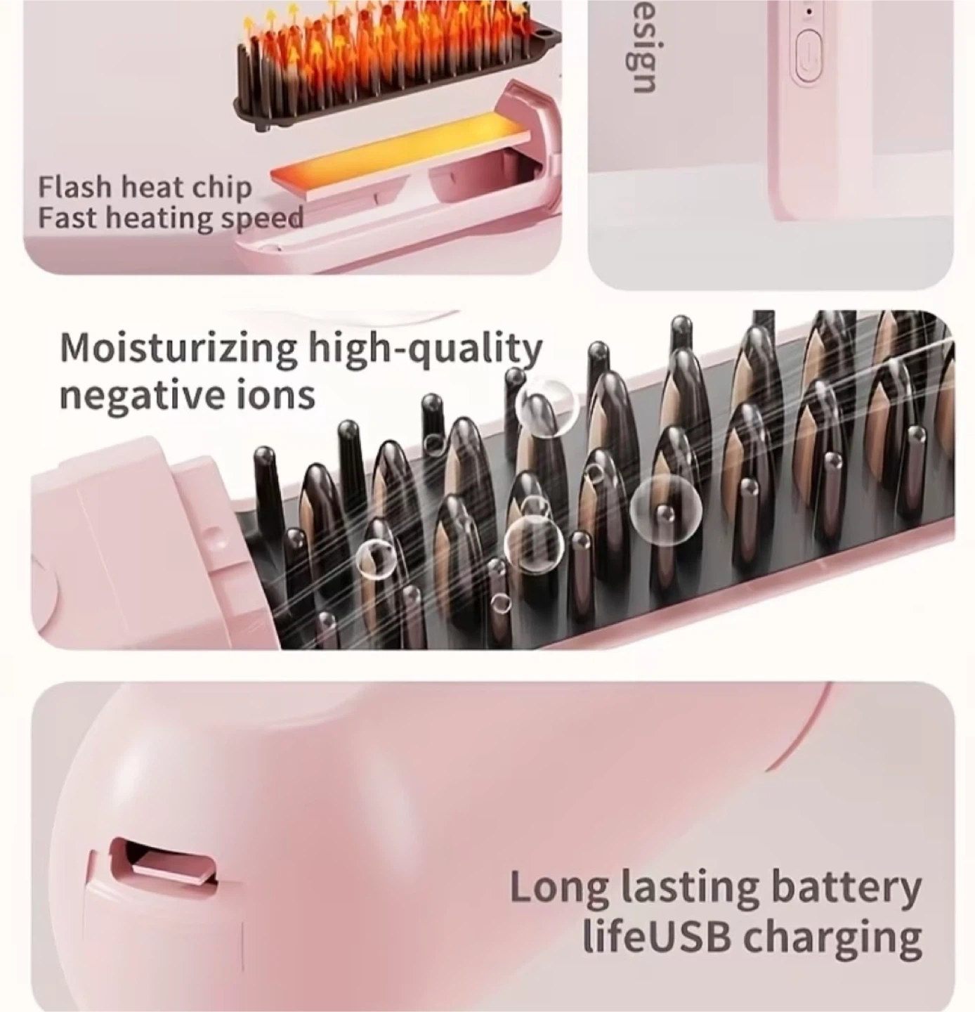 Travel Wireless Straight Hair Comb - Pink