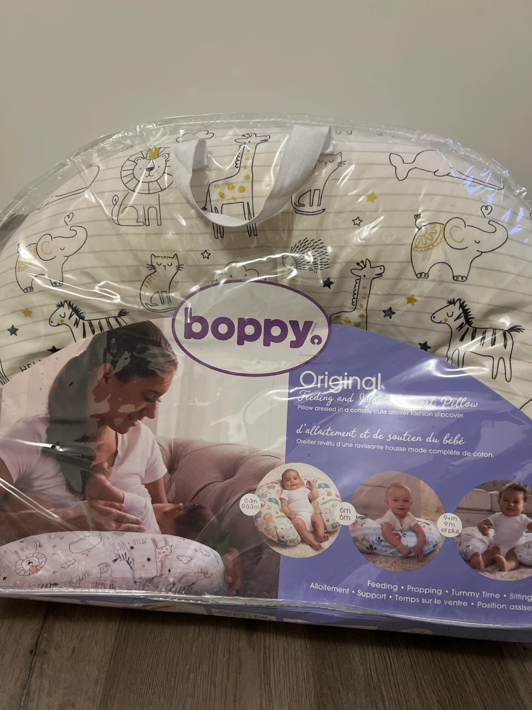 Selling a Boppy Original feeding and infant support pillow! It has a cute allover fashion slipcover made of cotton. It's great for: