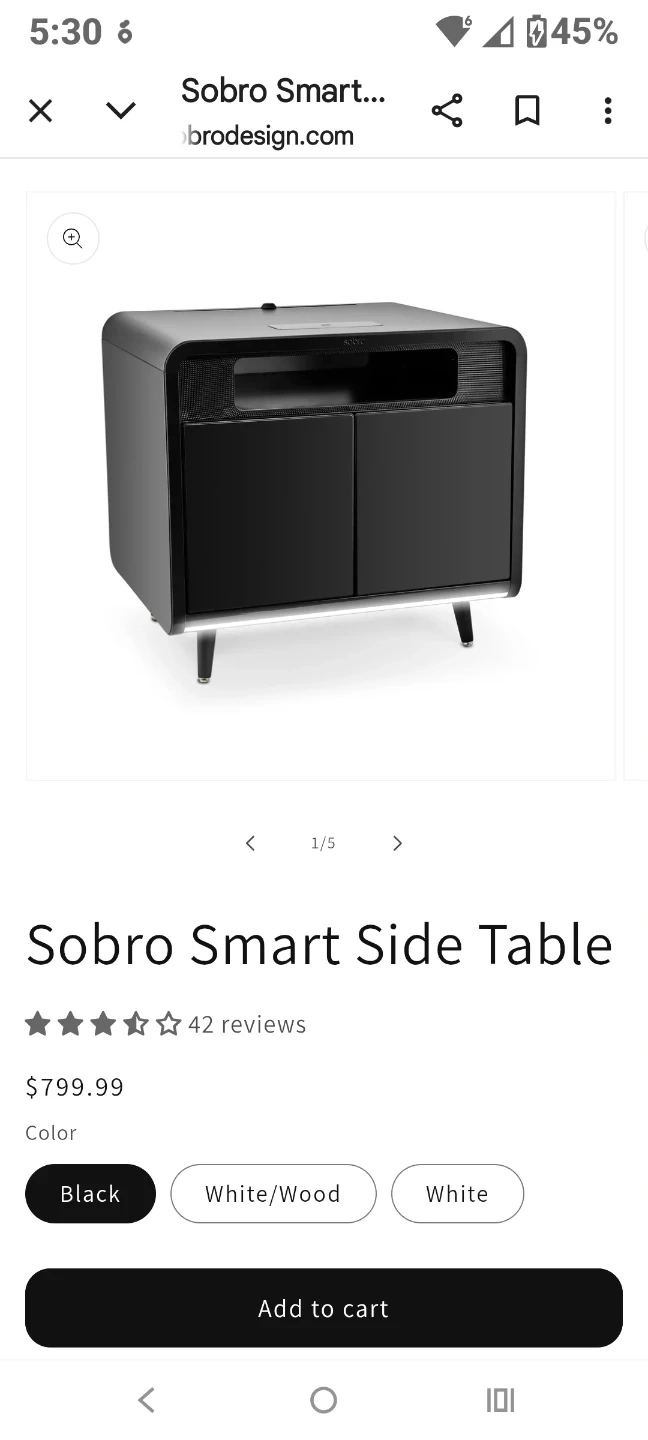 Sobro Smart Side Table - Cool Drawer & Wireless Charging