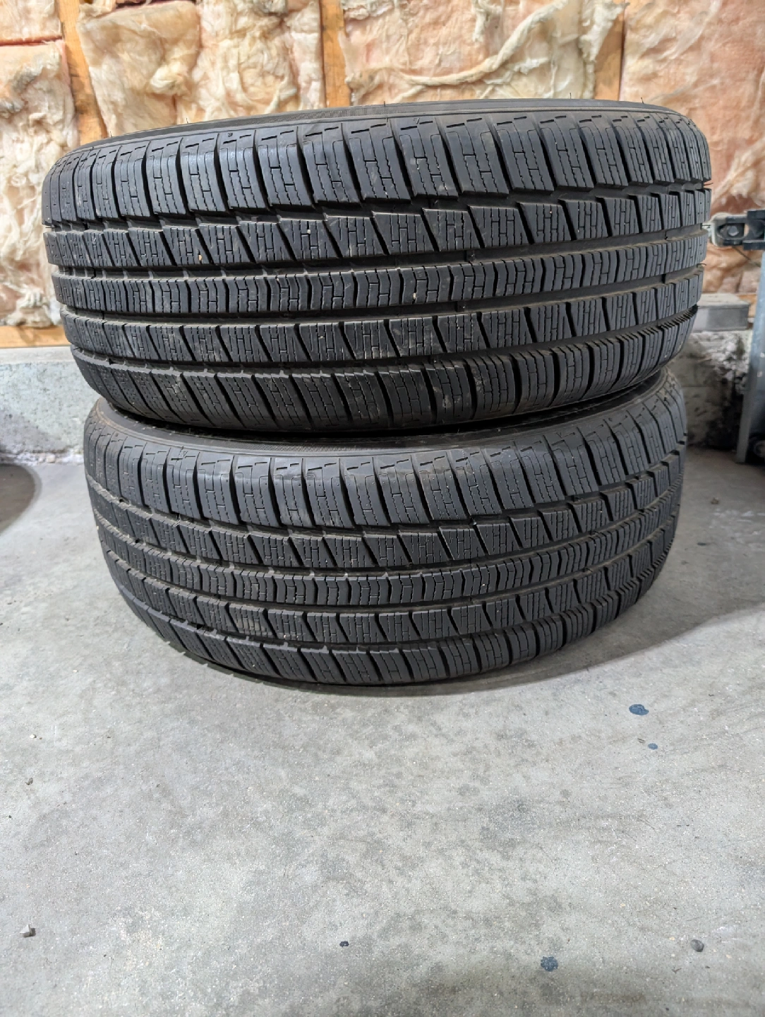 65(2)-225/55Zr17 All Weather Radar Dimax 4 Season Tires Snowflake symbol on the tire 2 Tires Only No Rims 11/32nds Or 100% Of Tread Left $280.00 Obo Located Near Concordia And Lagimodiere (#A18)