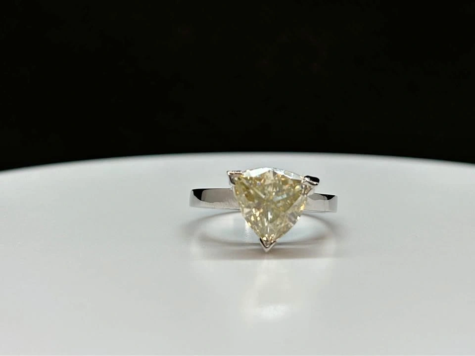 Brand NEW ITEM Facebook Page: darochajewellers https://www.facebook.com/share/9qCdkZNYtvCmTq4p/?mibextid=LQQJ4d CARAT: 2.51 Clarity: VVS1 Color: white golden yellow Shape: trillion Ring Size: 7 Ring material: 925 Silver Pickup only LOCATED NEAR PEACH FESTIVAL (WALKING DISTANCE) Ring comes with Tiffany blue box or pink box