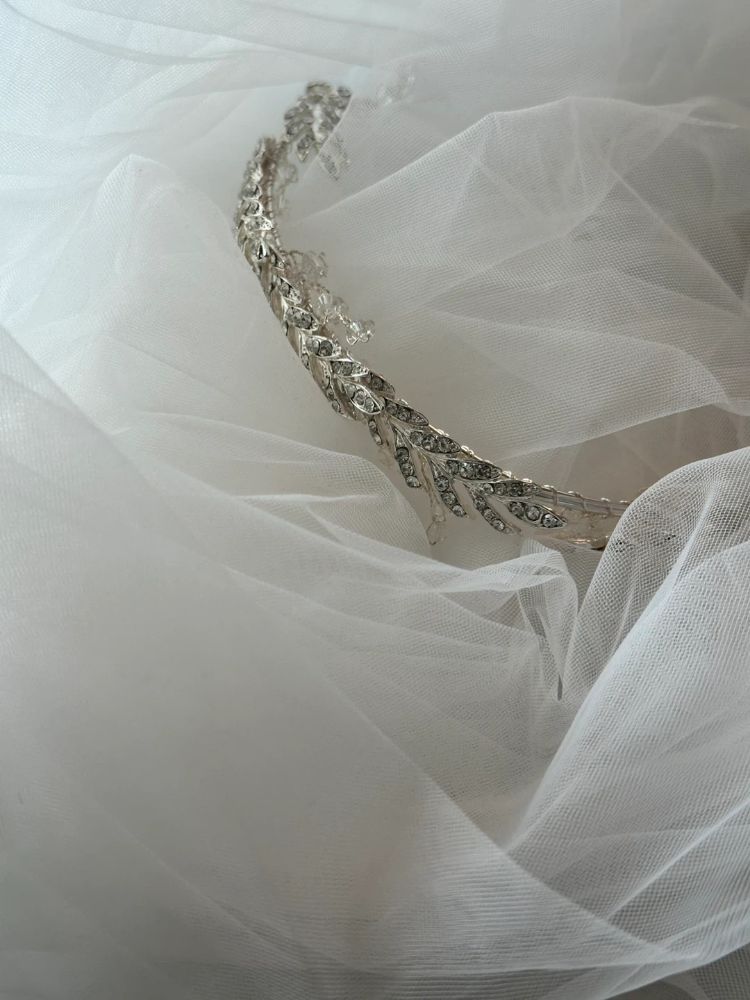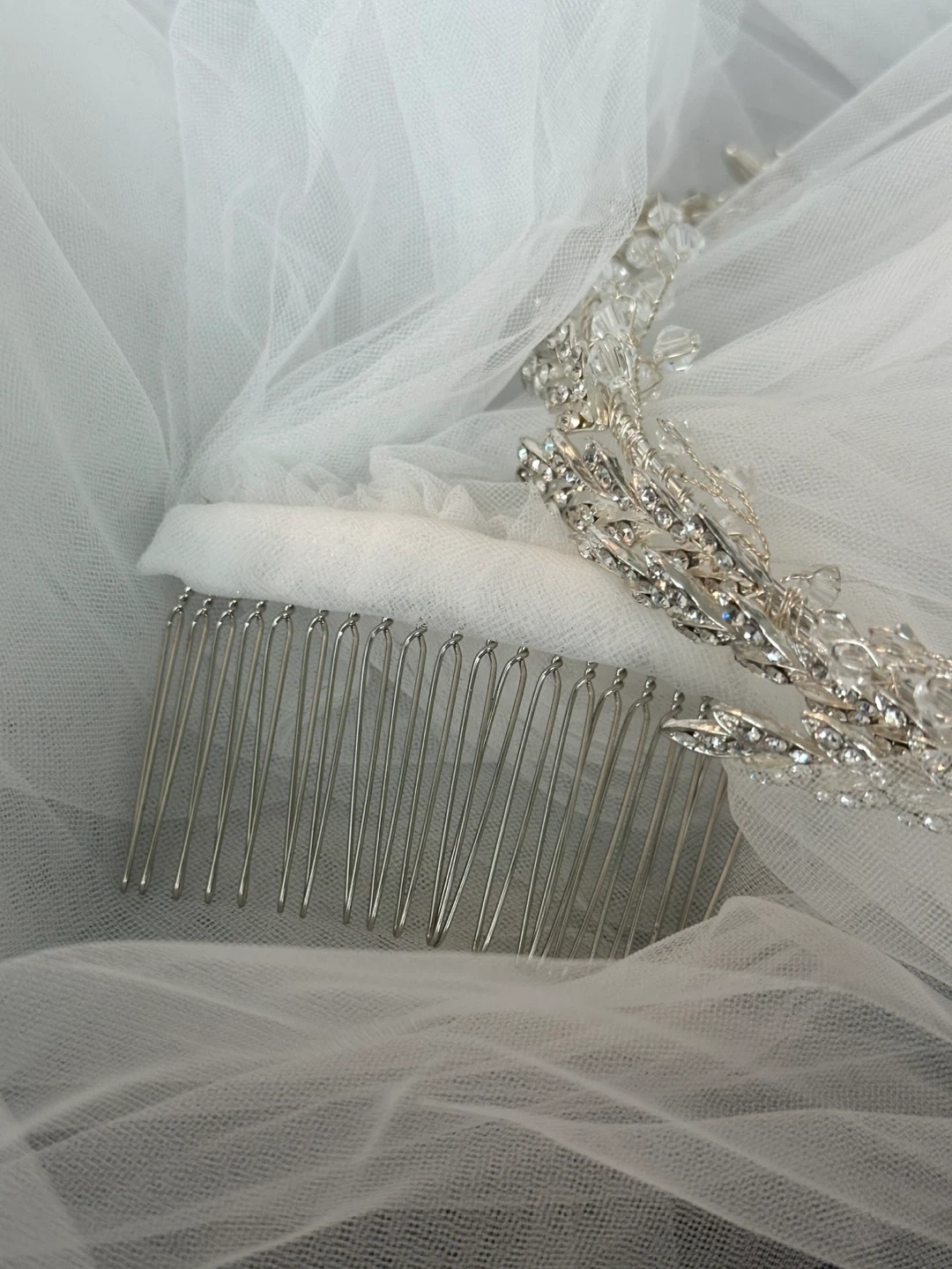 Selling a beautiful 2.5m Long Bridal Veil and Tiara Set. The veil is long and flowing, and the comb is adorned with crystals. Perfect for your special day!