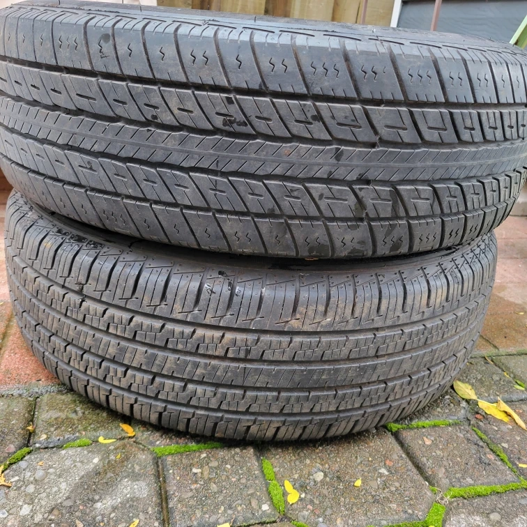 124One tire is a motomaster hydra edge and the other is a Uniroyal Tigerpaw touring a/s. They both still have a decent amount of tread left. Asking $60 for the pair. Delivery available within oshawa for a small fee. P185/65r15 18565r16 185 65 r15 Tire