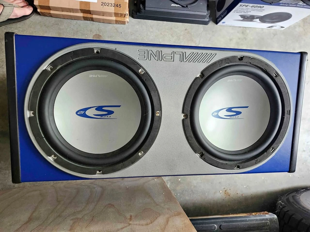 102 very nice 12" Alpine subs in a Custom built Alpine brand box for these subs, Excellent condition can be wired seperate or together